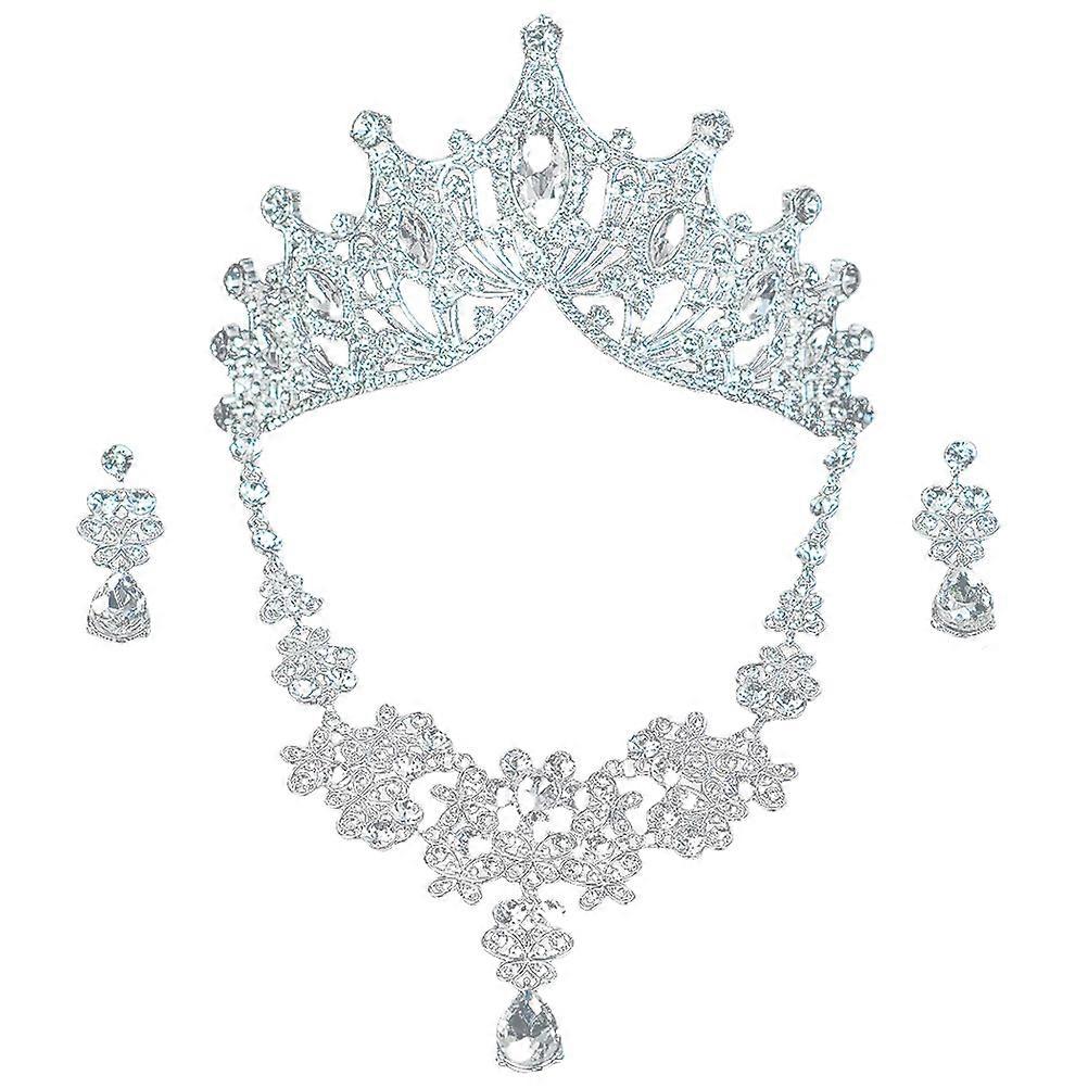 Durable Alloy Bridal Jewelry Set with Crown Tiara Earrings Necklace for Wedding Decoration Silver