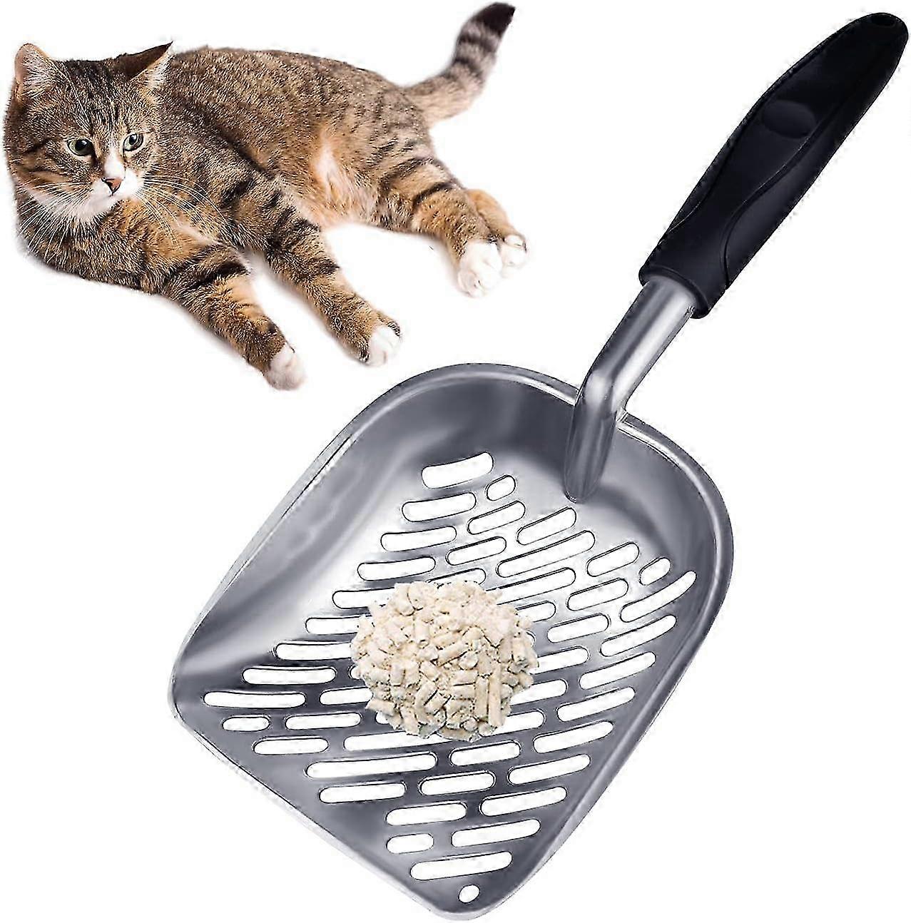 Durable Metal Cat Litter Scoop, Large Pet Litter Shovel, Ergonomic Long Handle Sifter, Easy Clean Litter Box Tool--Black