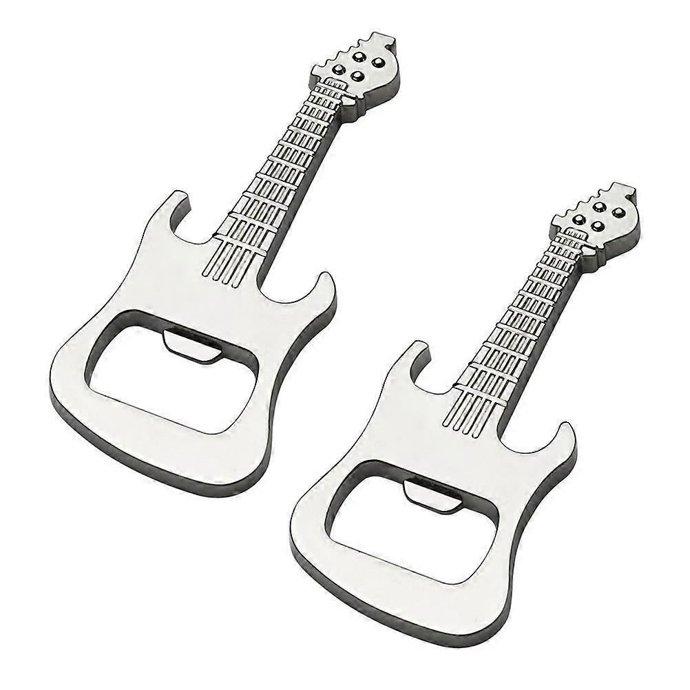 Guitar Shaped Opener Made of Alloy for Daily Use with Wear Resistance Silver Color Fits Pocket Easily 2 Pieces