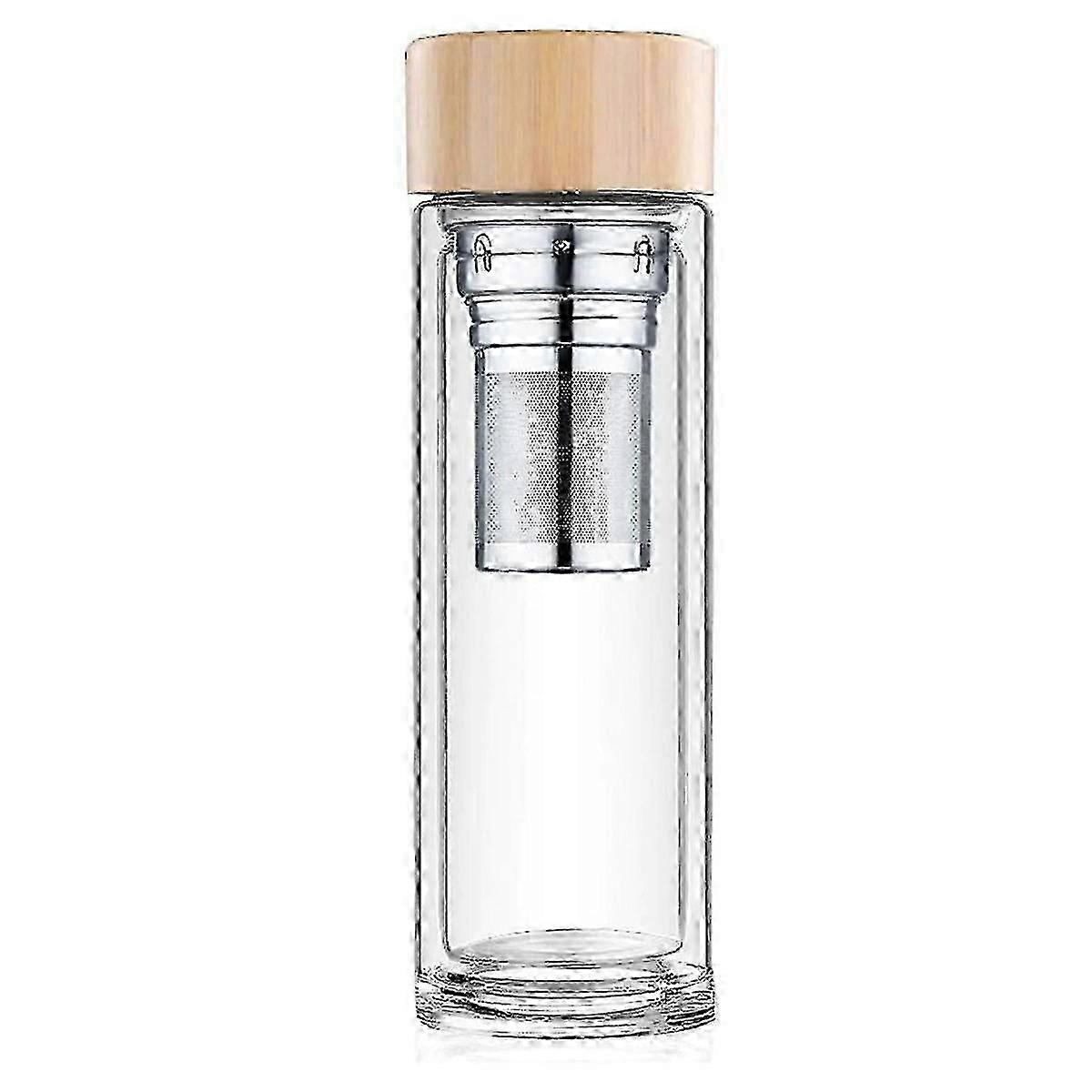 Heat-Resistant Borosilicate Glass Tea Bottle, Double-Walled Insulated Infuser, Reusable Leakproof Bamboo Lid, Stainless Steel Filter