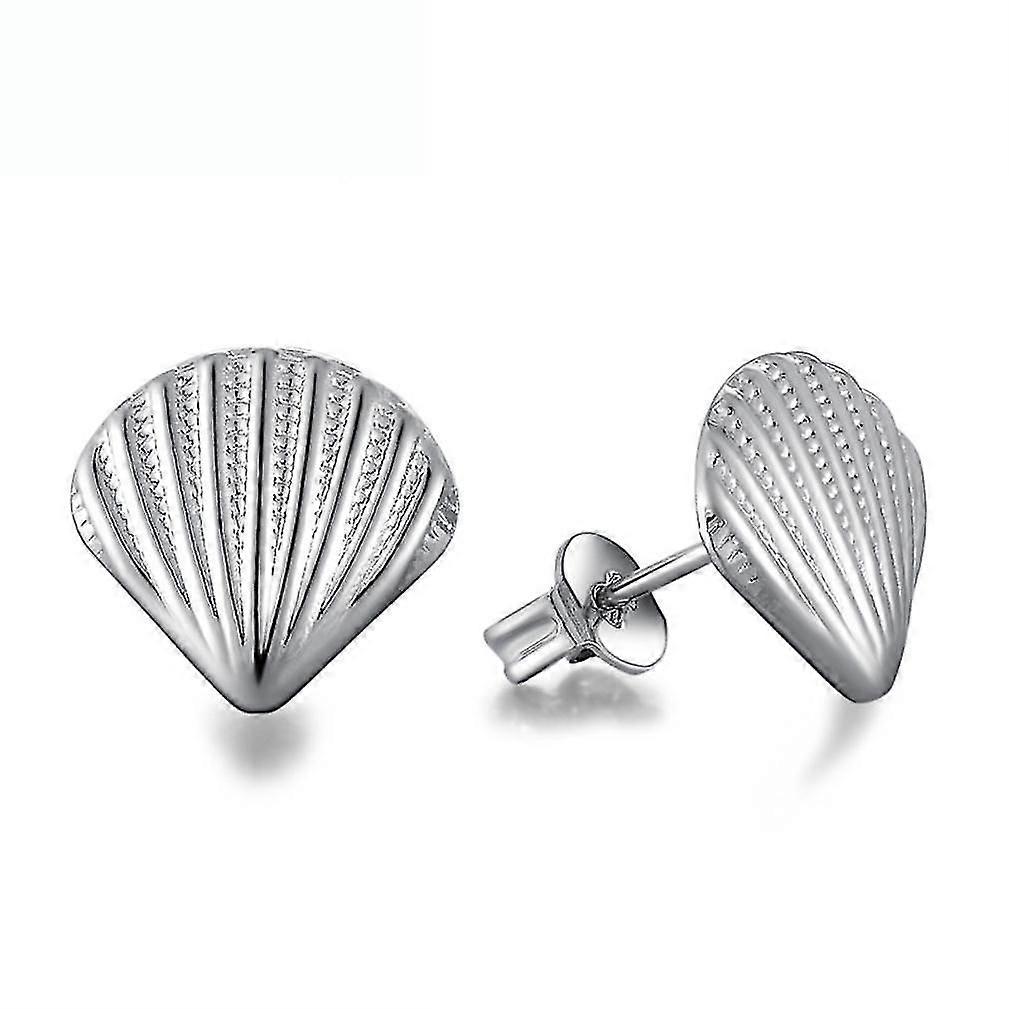 Ear Studs S925 Silver Plated Shell Flower Two Couple Beads Earrings For Birthday Gift
