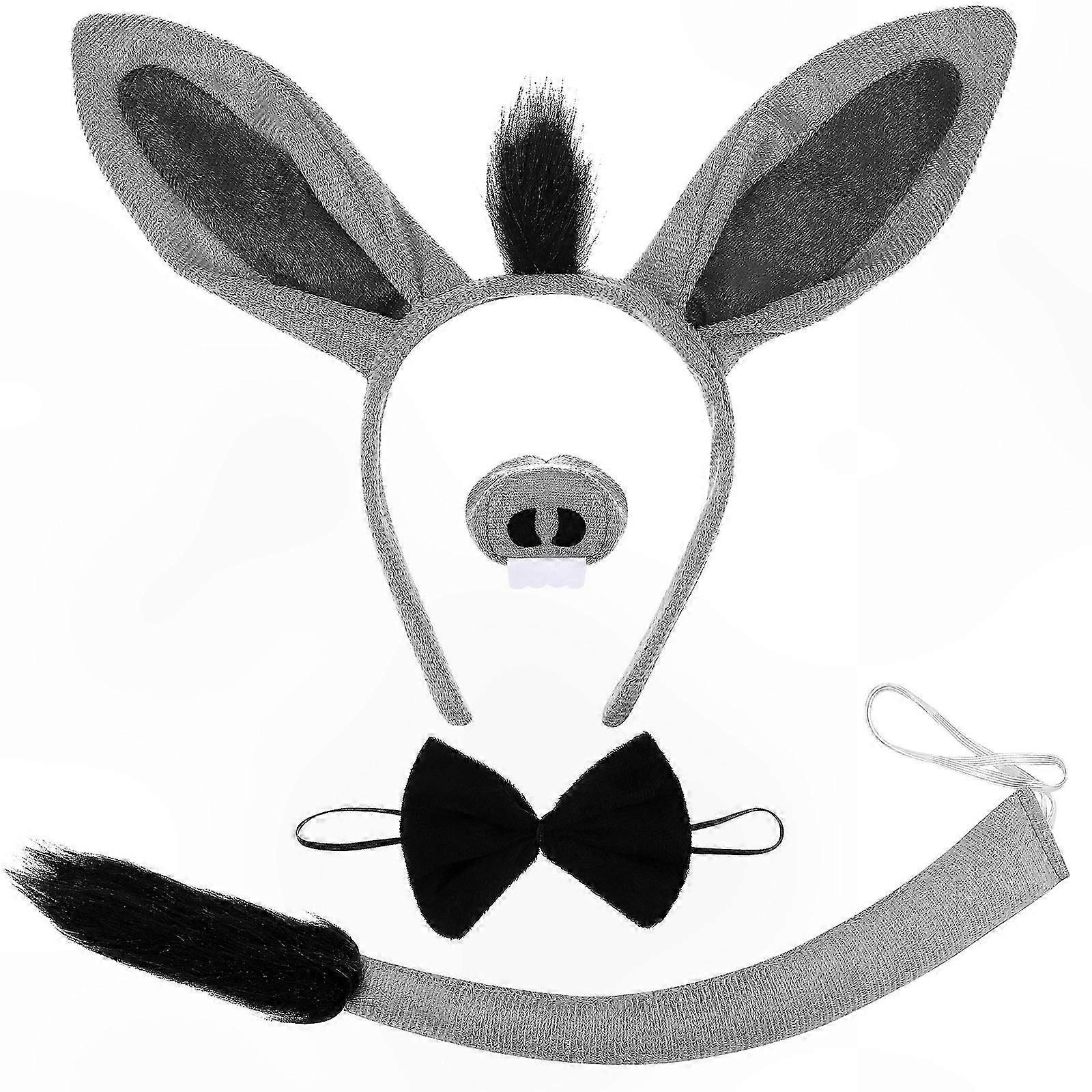 Donkey Costume Set with Ear Headband, Tail, Bowtie, and Nose Decor for Perfect Animal Role Filtering
