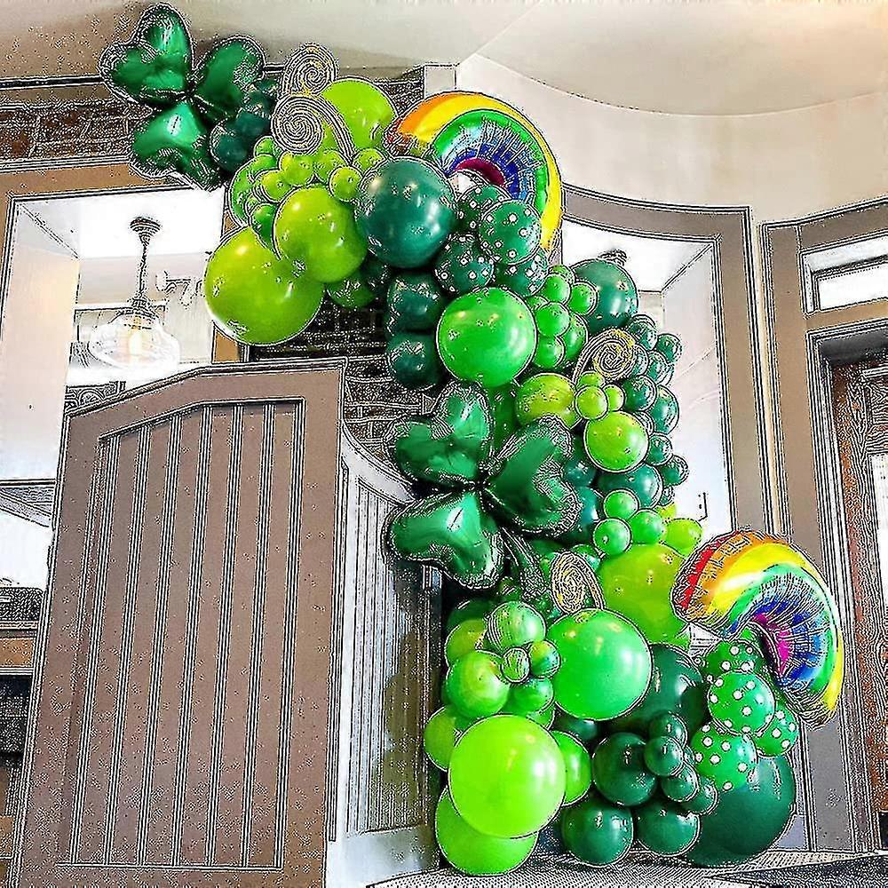 128pcs Green Balloon Arch Garland Kit With Lucky Shamrock Clover Rainbow Foil Balloons For St. Patrick's Day Party Decorations Irish Festival Party De