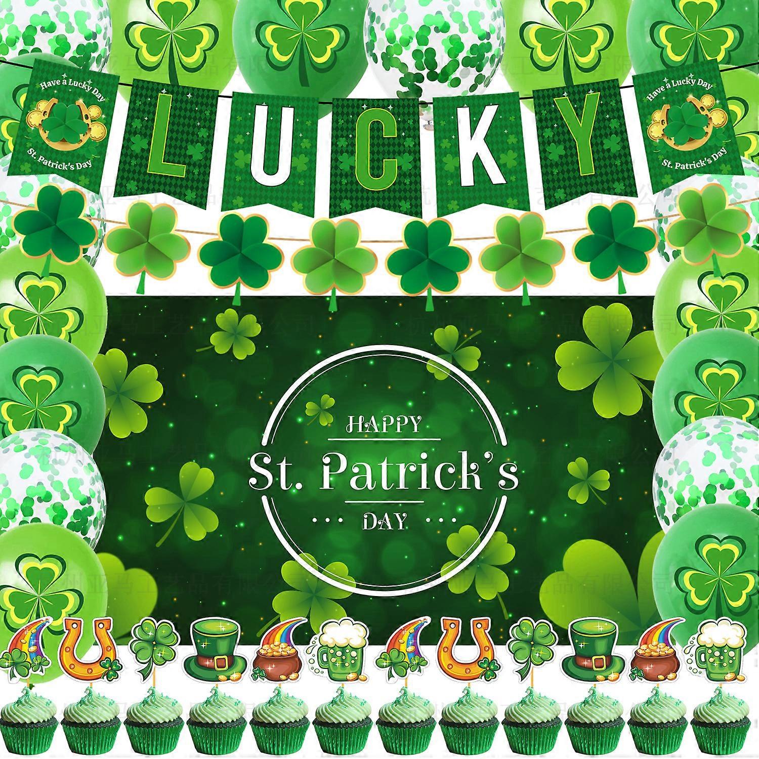 St Patrick's Day party supplies Clover banner Irish Festival cake inserting balloon decoration suit