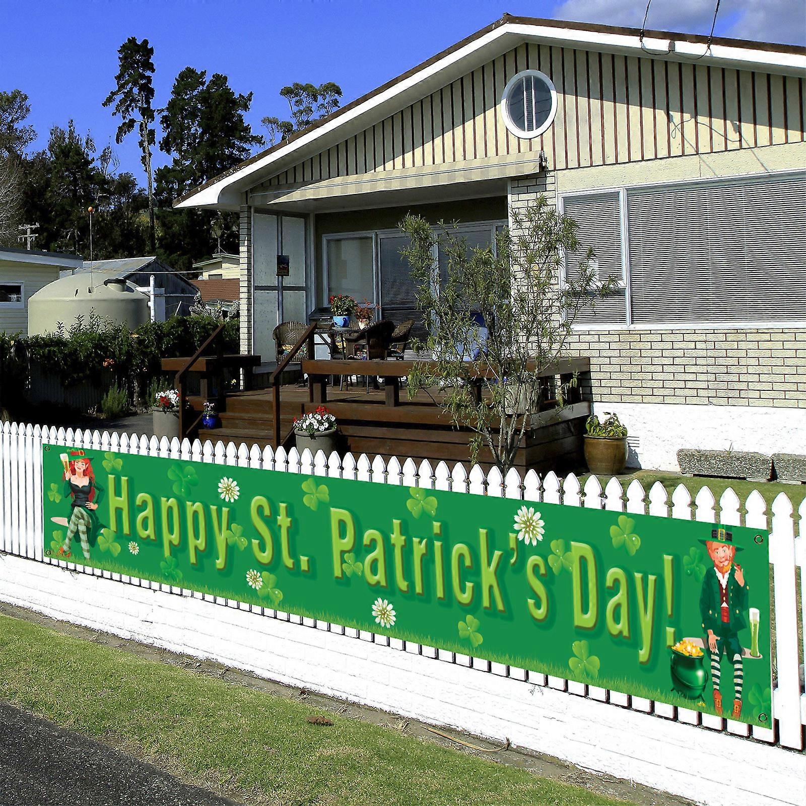 St. Patrick's Day Banner Holiday Celebrate Flag House Banner Yard Outdoor Decor Feature: 1.It is soft, comfortable, durable and beautiful. 2.This color is very bright. This banner incorporates classic St. Patrick elements. When you fix your banner on your fence, you will spend a perfect holiday with your. 3.You can install it on your garden, courtyard and fence. Expanded Length:30050CM/118.119.7inch Package included1banner