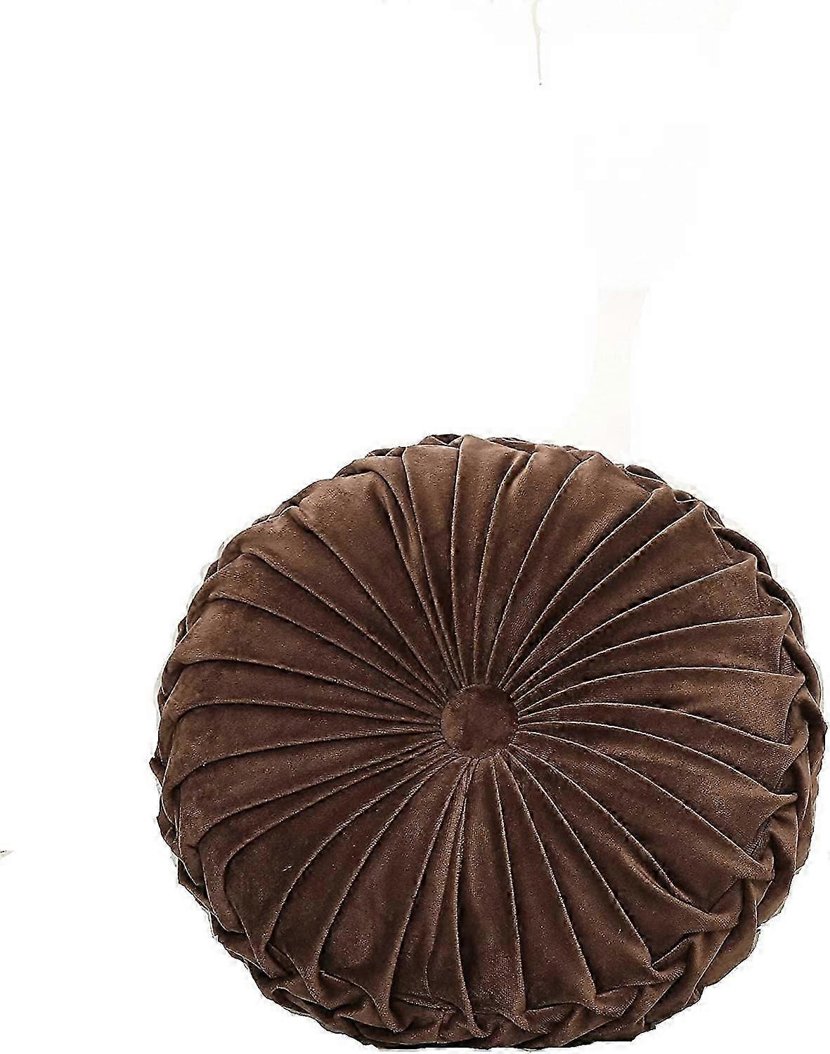 Craftsmanship Pleated Throw Pillow, Home Decorative Round Pumpkin Velvet Cushion, Floor Pillows for Living Room Chair Couch Sofa (Brown)