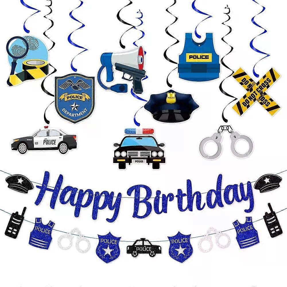 Vocation Police Theme Happy Birthday Banner Police Car Swirl Hanging Garland for Kids Boy Birthday Baby Shower Party Decor