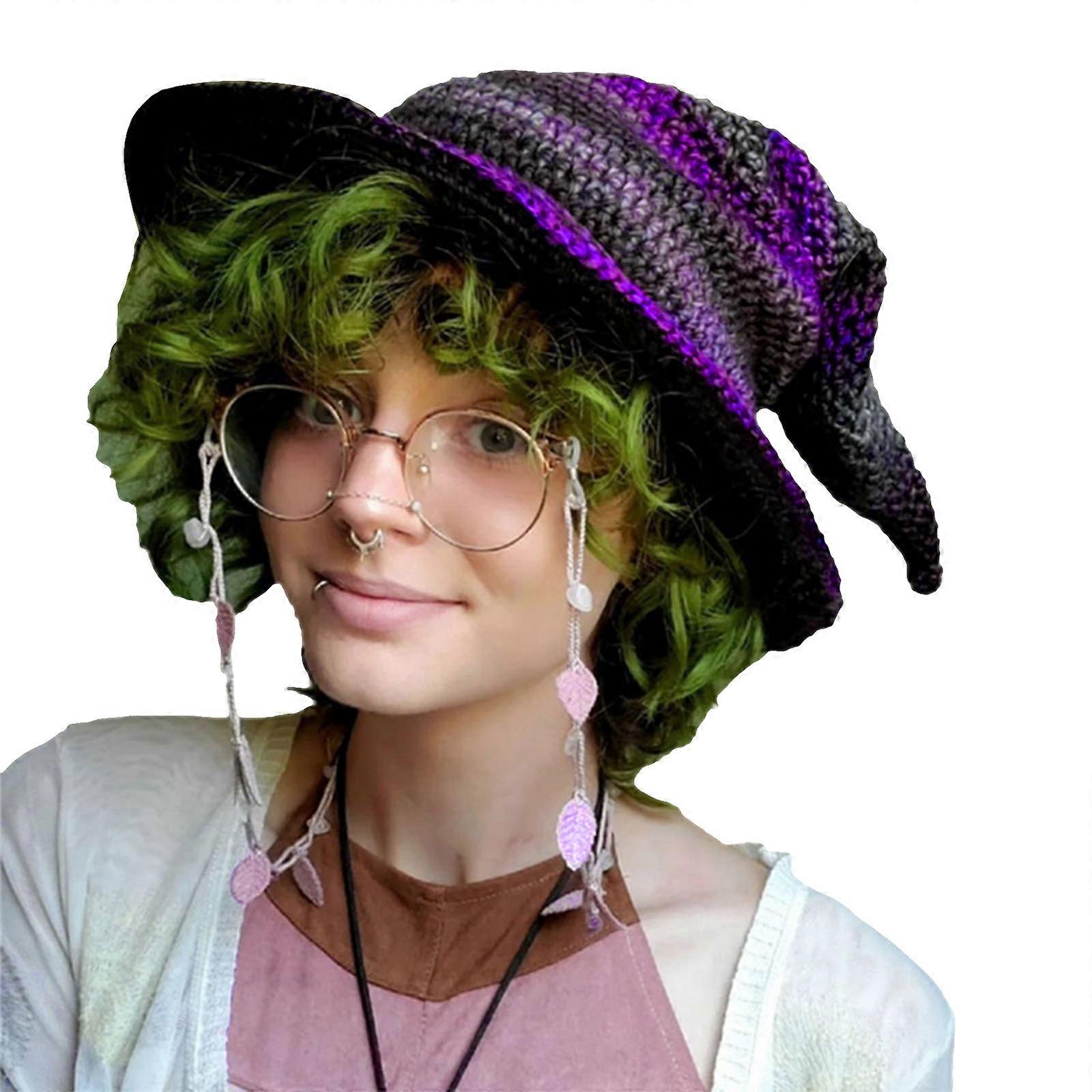 Skin-friendly Knit Witch Hats Handmade for Halloween Diy Hair Accessories Crafts Halloween Carnival Party Supplies black and purple