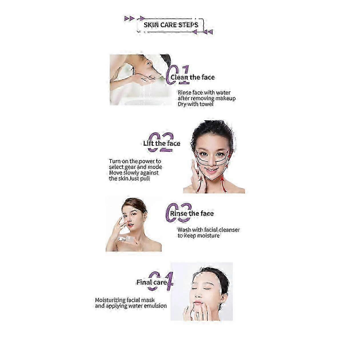 Ultra-micro cleansing, free breathing, 6 times deep cleansing, skin rejuvenation and age-preserving black technology, skin becomes moist and translucent again. The skin is like gelatin, and its beauty is endless. Three-color phototherapy can lift, tighten and calm the skin. Red, blue and orange three-color light therapy penetrates deep into the skin and reconstructs the tender texture. Round and smooth head, ergonomic design, easily lifts facial skin. The base is stable, easy to place, meticulous craftsmanship, designed for women's hands, scratch-resistant and wear-resistant. Colour:Purple Material:ABS Package Contents: 1 * Beauty instrument 1 * Charging cable 1 * Instructions in Chinese and English Only the above package content, other products are not included. Note: Light reflection and different displays may cause the color of the item in the picture a little different from the real thing. The measurement allowed error is +/- 1-3cm.