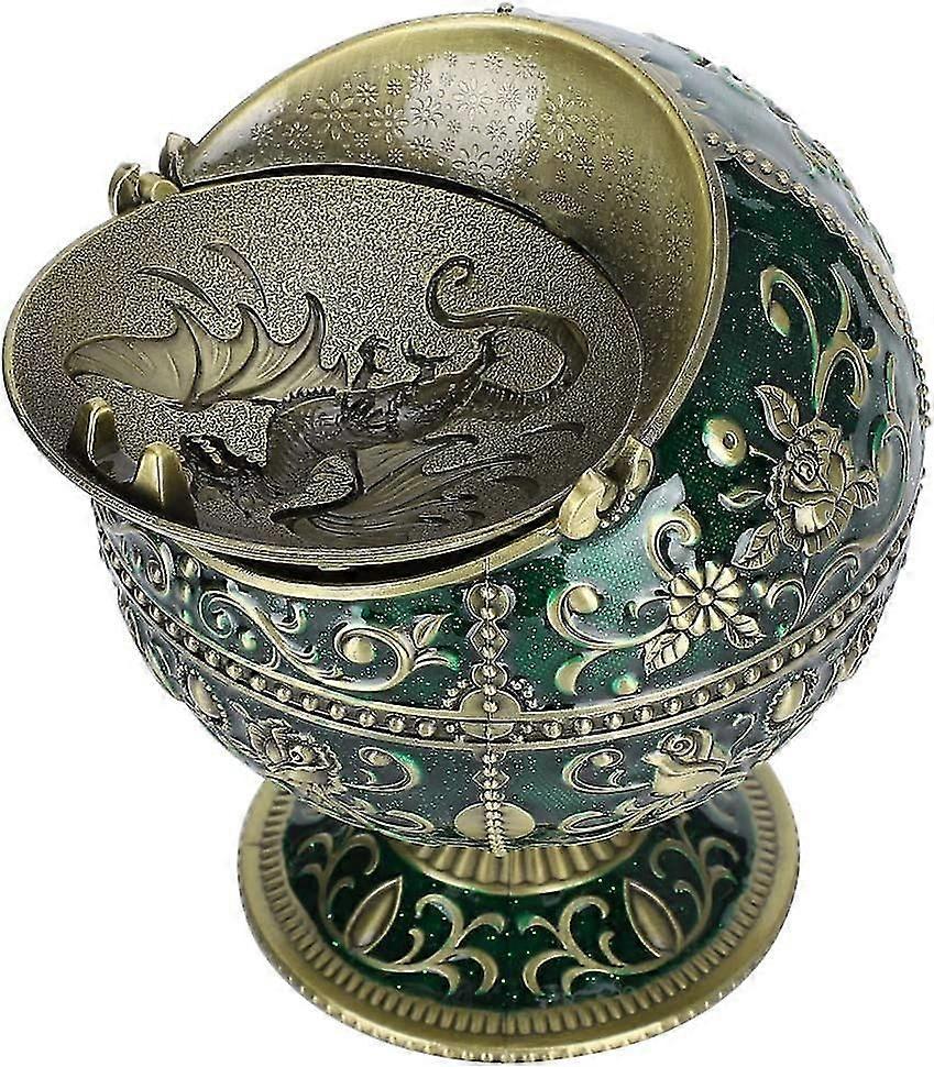 Tall Vintage Ashtray With Cover, Bronze Earth Flying Dragon Shaped Windproof Ashtray For Home Office