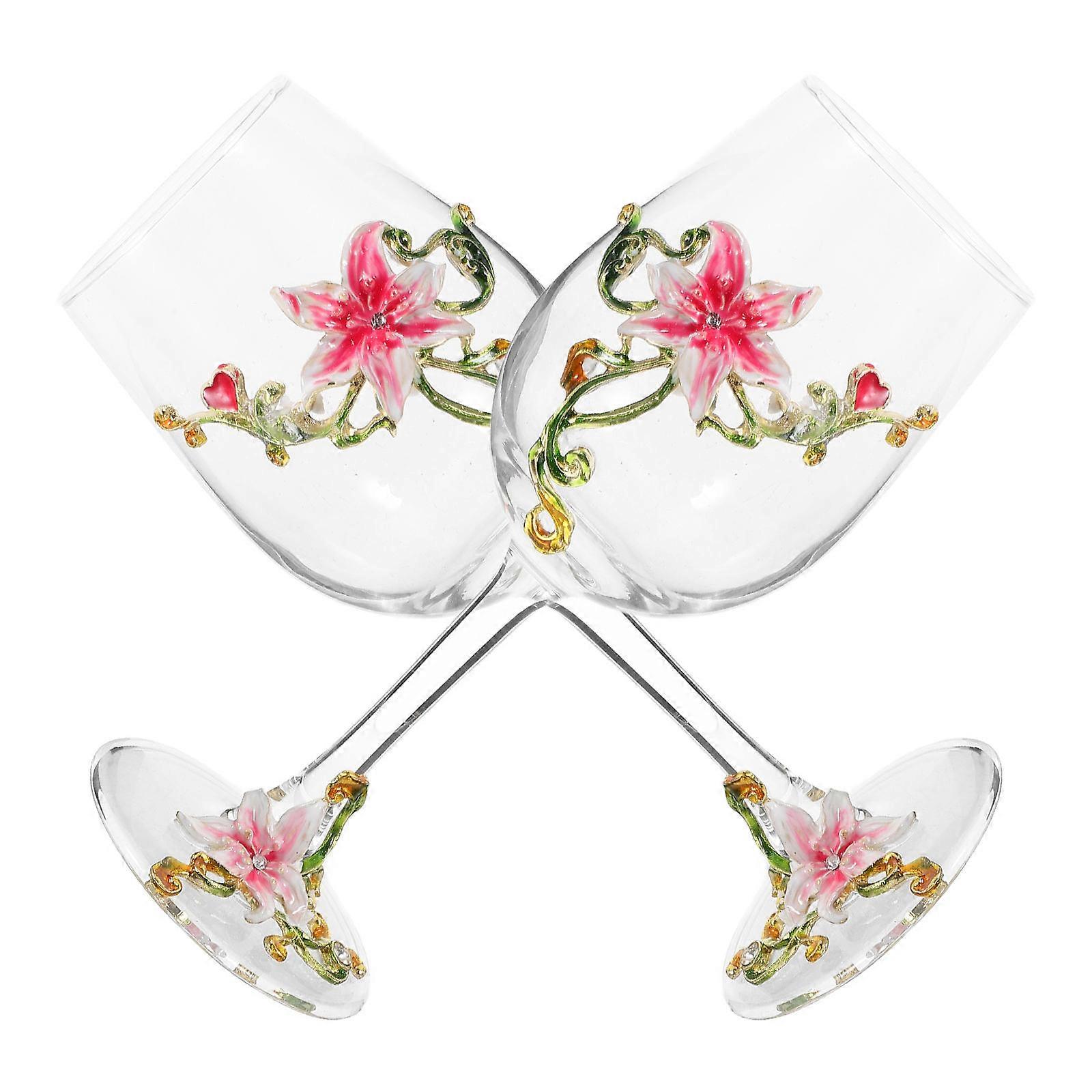 Tall Stemmed Enamel Glass Wine Cup Pink 20X7.5X7.5CM Restaurant Use 2Pcs