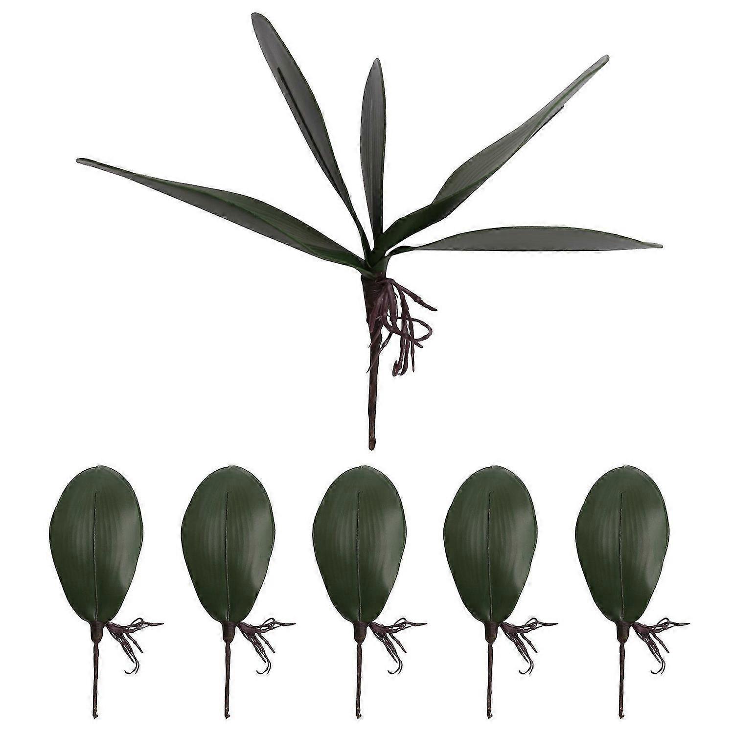 Phalaenopsis Orchids Leaves Artificial Real Looking Latex Plants Green Faux Leaf Arrangement,6 PCS