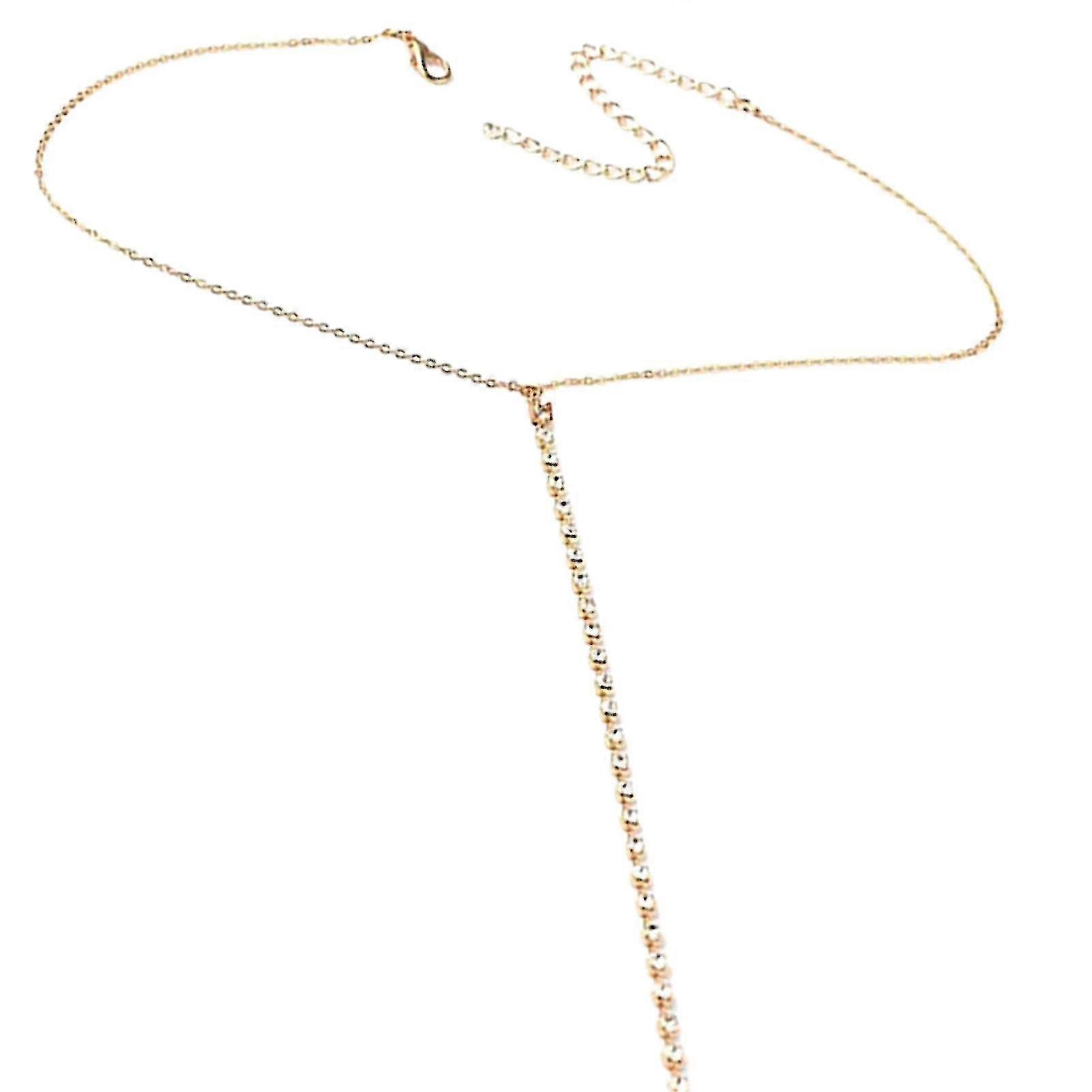 Between Chest Chain Long Necklace Rhinestone Pendant Sexy Alloy Neck Decor WG