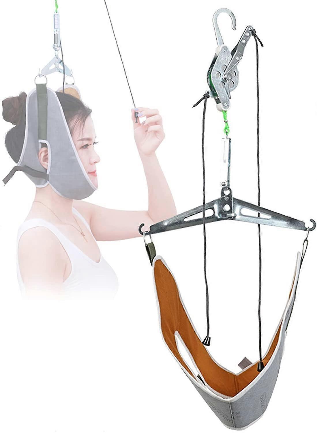 Neck Stretcher Cervical Traction Over The Door for Spine Decompression, Portable Physical Therapy Device,Grey