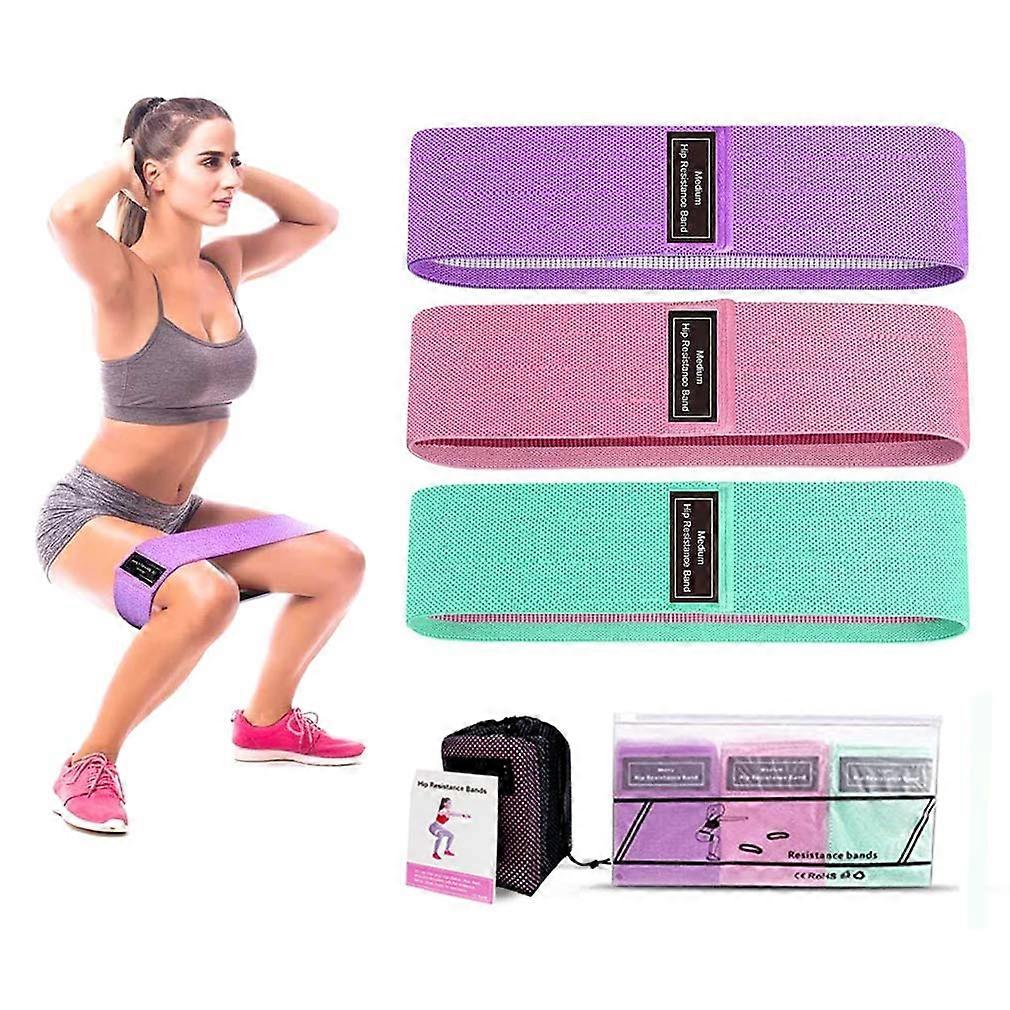 1.[SET OF 3 BOOTY RESISTANCE BANDS]- The hip exercise bands are divided into 3 levels of resistance: Light resistance (18~32lbs), Medium resistance (30~50lbs), and Heavy resistance (45~70lbs). Never worry about the hip bands being too stretchy, easily switch between the 3 levels to your preference anytime. Come with 1x carry bag and 1x workout guide. You can carry it with you wherever you want, whether at home, in the gym, or on the road. 2.[WIDENED & THICKENED, NON-SLIP & HIGH RESISTANT]- High-quality polyester fiber and latex silk material, wide and thick anti-slip properties, more than 10,000 durability tests to ensure that our fitness band is not easy to break, and repeated use will not reduce its elasticity. Environmental protection, breathable and soft, let you rest assured. 3.[SUITABLE FOR MANY EXERCISE]- The elastic fabric bands for exercise are perfect for assisting with P90x, Cross Fit, Yoga, Insanity, Pilates, Hot Yoga, and Beach Body workouts. The leg bands will exalt the hip and modify the legs, shape a beautiful figure, and while can relieve the pressure and fatigue effectively. 4.[EASY TO USE, SUITABLE FOR ALMOST EVERYONE]- The key to getting training results is to keep exercising and eliminate excuses. The hip resistance band is designed to provide excellent exercise capabilities to help you solve body shape problems. The exercise belt adapts to anyone, any place, any time, so you will never miss an excuse to exercise anymore.