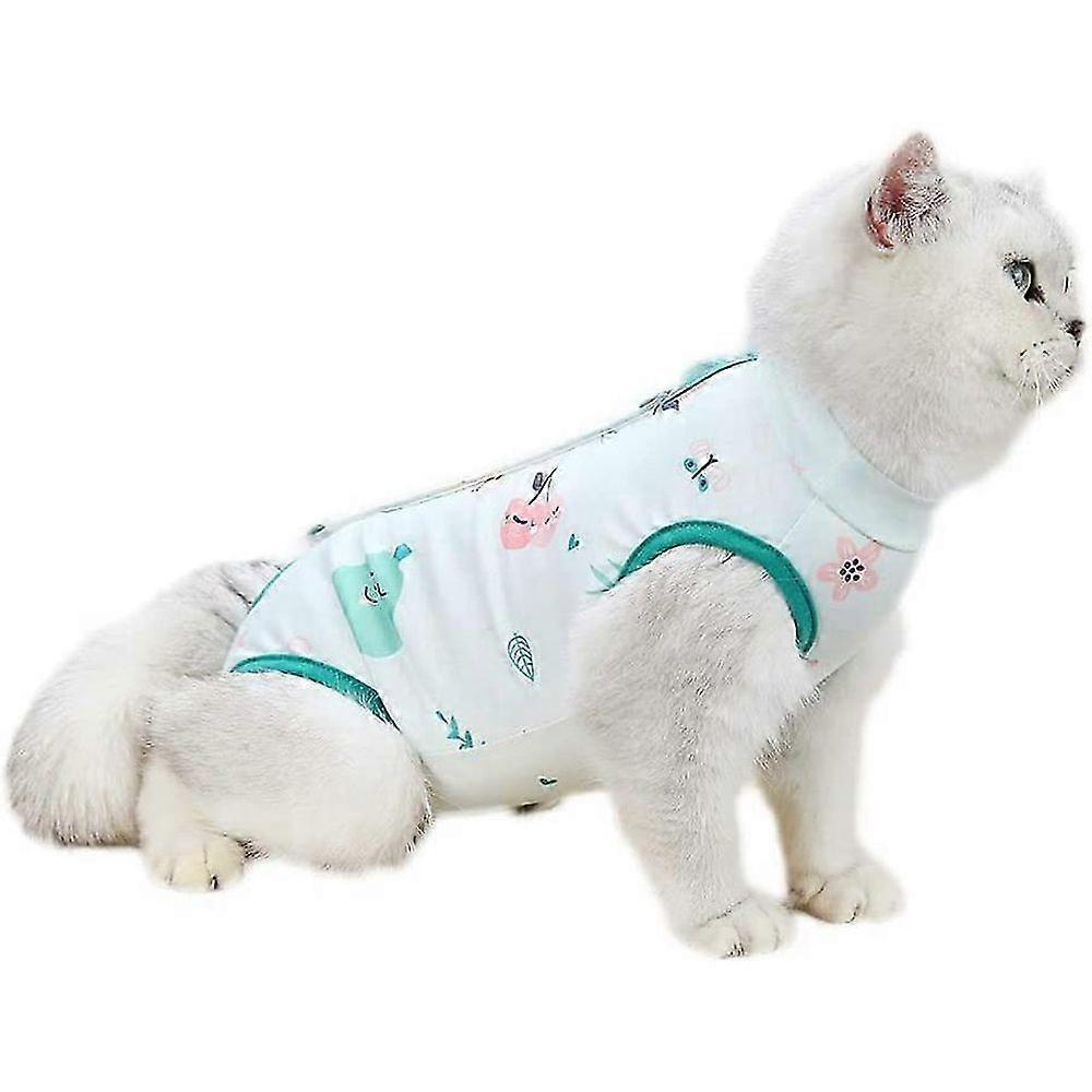 Cat Professional Recovery Suit With Anti Licking for Abdominal Wounds,Cat ClothingGreen,S