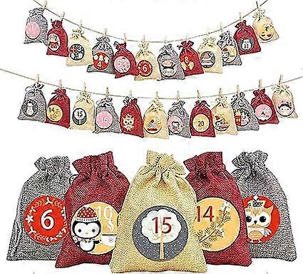 Fill Your Own Advent Calendar | Advent Calendar Bags 2023 | 24 Days Christmas Countdown 3 Colors Burlap Bags with Number Sticker Set and Fabric Hangin