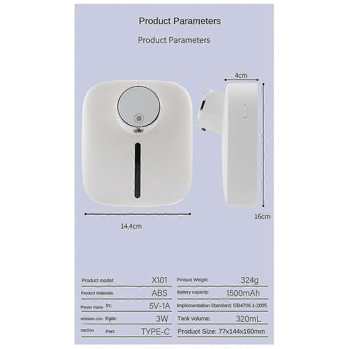 1. Automatic induction of foaming, no need to press, convenient and more hygienic 2. Wall-mounted design is more beautiful and comfortable, saving space 3. Compatible with foaming liquids 4. Temperature display and power display 5. Multi-level selection and tips for dense foam color: White Battery capacity: 1500mah Input: 5v-1A Power: 3W Water tank volume: 320mL Interface: TYPE-C Material:plastic Size:7.7 x 14.4 x 16cm Package Contents: 1 x Soap dispenser 1 x Instructions in Chinese and English 1 x TYPE-C data cable 1 x Wall mounted bracket 1 x Funnel 2 x Back glue Only the above package content, other products are not included. Note: Light reflection and different displays may cause the color of the item in the picture a little different from the real thing. The measurement allowed error is +/- 1-3cm.