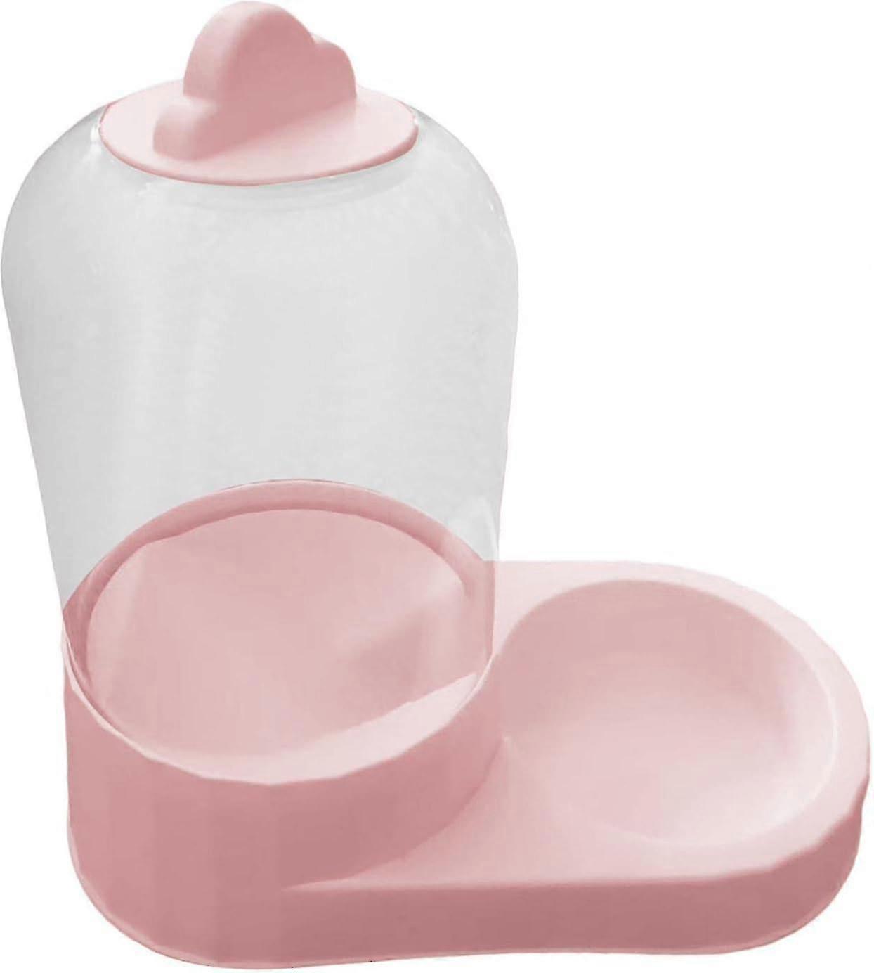 Automatic Pet Feeder Food Bowls Water Food Dispenser Travel Supply, Waterer Nonslip Bottom 6 Degree Inclined For Puppy Small Medium Pet, Pink Food