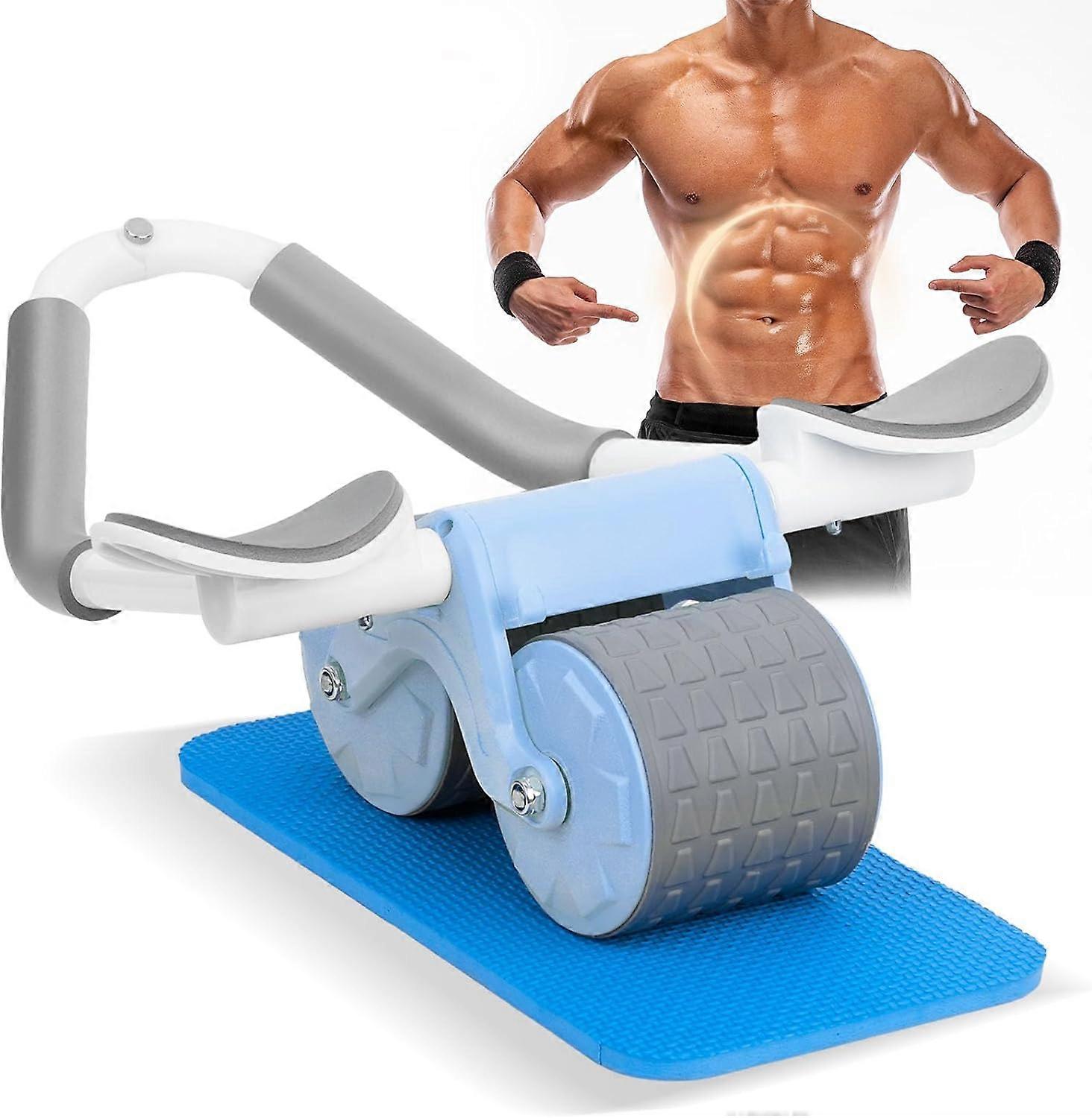 Automatic Rebound Ab Roller Wheel, Double Wheel Abdominal Exercise Roller w/Elbow Support and Knee Mat for Body Fitness Core Strength Training