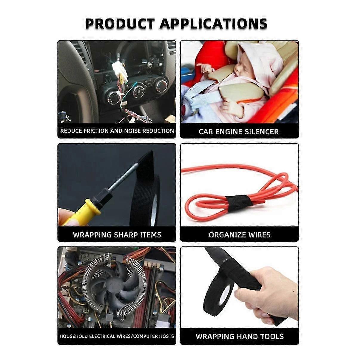 Highly viscous, noise- and heat- chemical fiber fabric electrical tape, widely used near engines, batteries or on ordinary wiring harnesses. It has strong anti-peel performance and not debond during use. Does not contain harmful substances, good flexibility and tear resistance. The adhesive of this tape stays on well for a long time and provides a strong grip. Can be used to apply this wiring harness tape. Ideal for noise reduction in wiring harnesses for automotive interior components, such as dashboard wiring harnesses and main harness wraps. Excellent and anti-aging wire harness tape, mainly used for insulation and protection of engine compartment and battery windings, wire harness tape. Colour:Black Material:flannel Size:19mmx15m Package Contents: 10 * Thermal tape