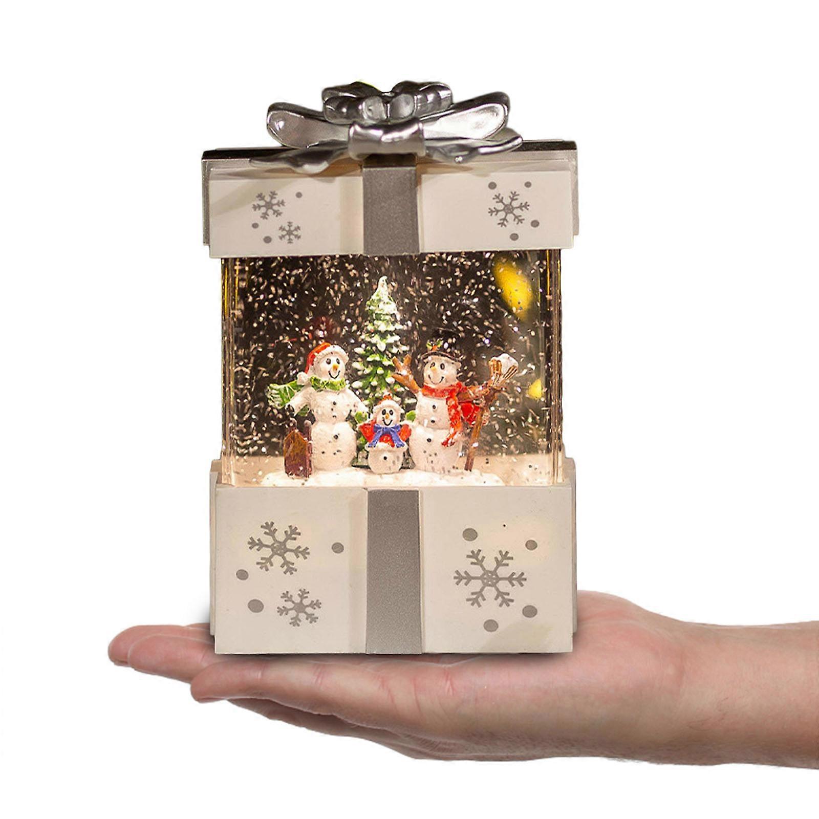 Light Up Music Box with Automatic Snow and Colorful Lights Festive Christmas New Year Decor Gift for Kids and Adults White