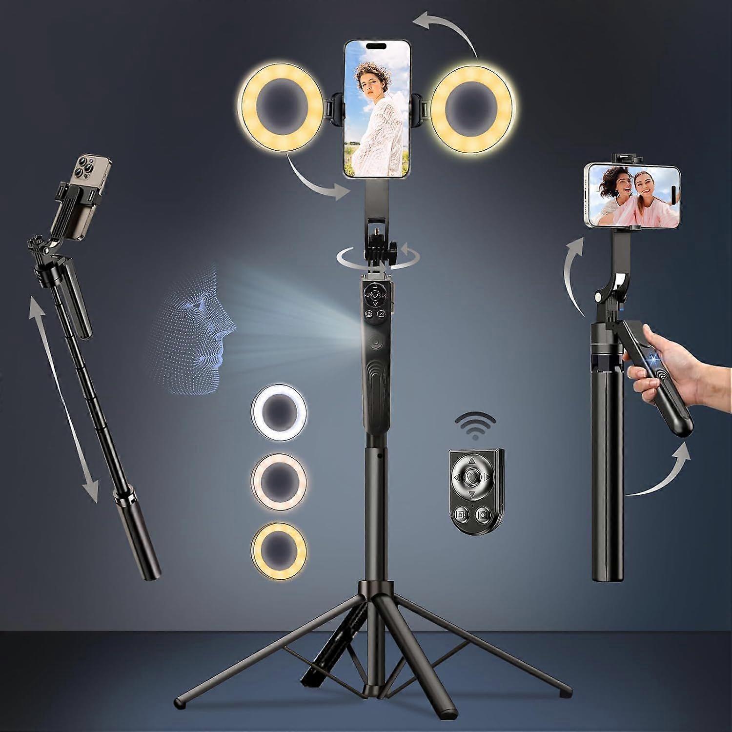 Automatic Face Tracking Selfie Stick Tripod for iPhone with Light, 360 Degree