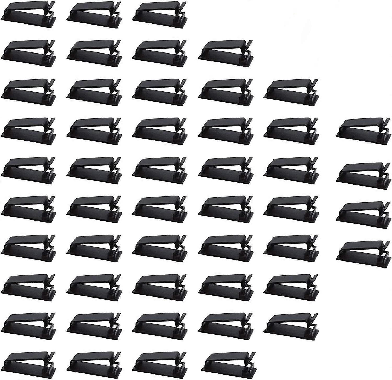 Self Adhesive Cable Management Clips, Cable Organisers Wire Clips Cord Holder for TV PC Laptop Ethernet Cable Desktop Home Office (50Pcs, Black)