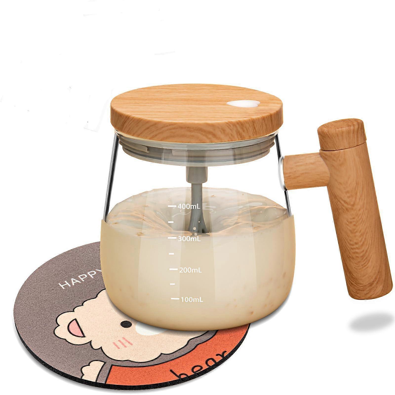 Self-stirring cup, electric high-speed blender cup, 400ml self-stirring coffee cup with lid, high borosilicate glass cup for home office coffee, milk,