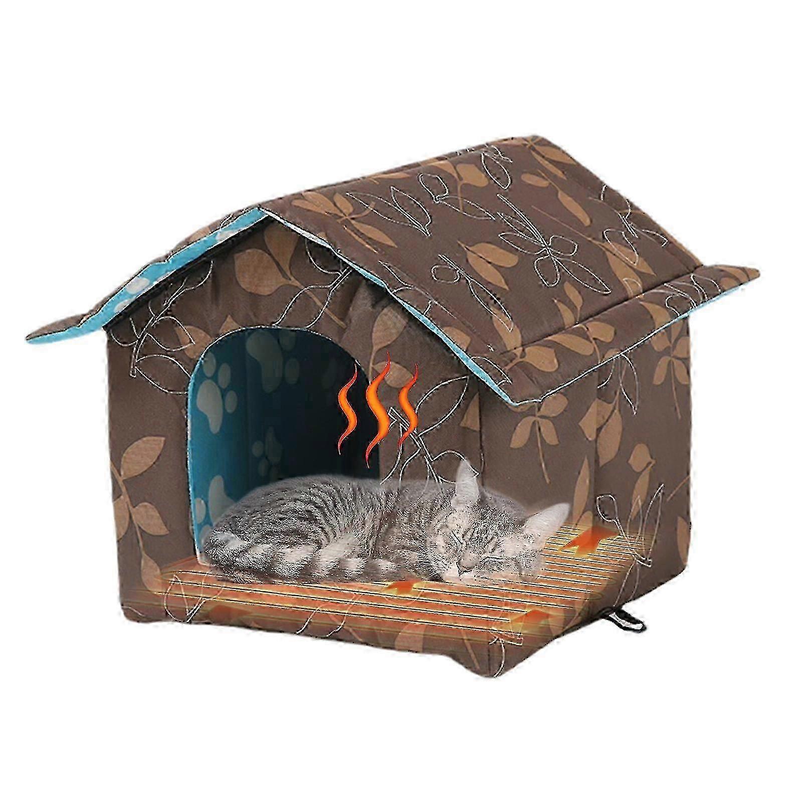 Heated Pet House with Self-Warming Pad - Weatherproof Insulated Shelter for Cats, Dogs, Rabbits Indoor/Outdoor