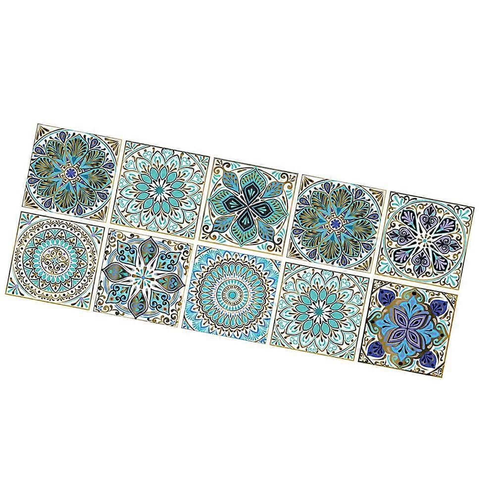 Self Adhesive Tile Sticker Mandala Wall Tile Stickers Waterproof for Homeowners Kitchen Bathroom Smooth and Delicate Surface 10x10cm 10Pcs