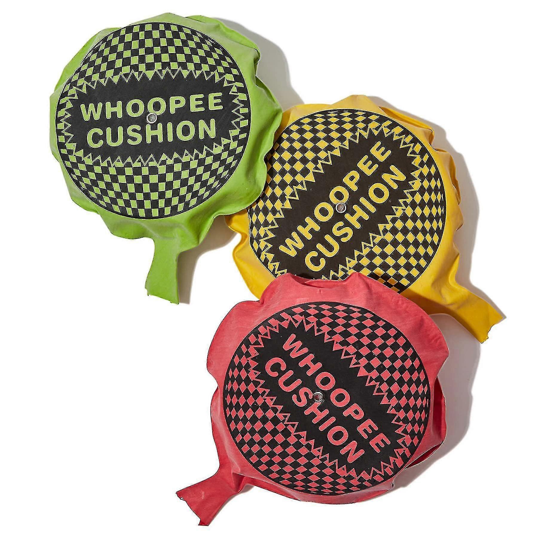Available in 3 assorted colours Include Yellow, Green and RedSize approx. 16.5cm eachIdeal party bag filler or lucky dip toyBlow up the cushion and sit back and laugh when its sat on and rude and loud noises are omitted