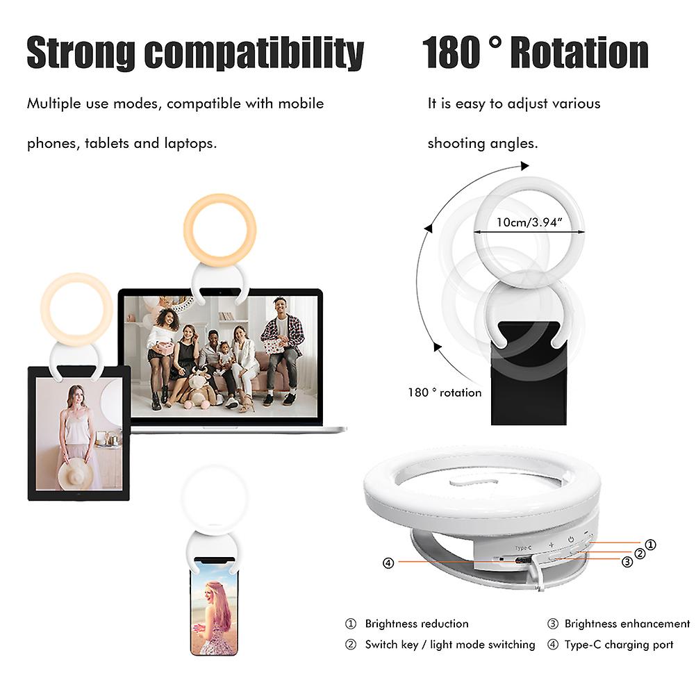 Selfie Ring Light Mini 180° Rotating USB 500mAh 3 Modes Clip-On