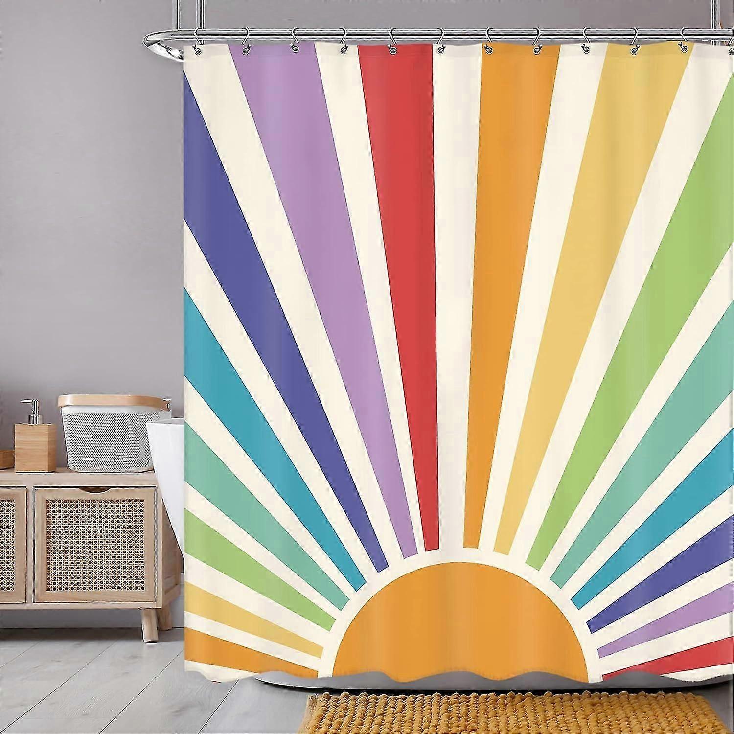 Boho Vintage Sun 70s Shower Curtain 60Wx72H Inch Retro Rainbow Cute Sunshine Sunrise Sunset Colorful Abstract Shower Curtain Set Aesthetic Waterproof