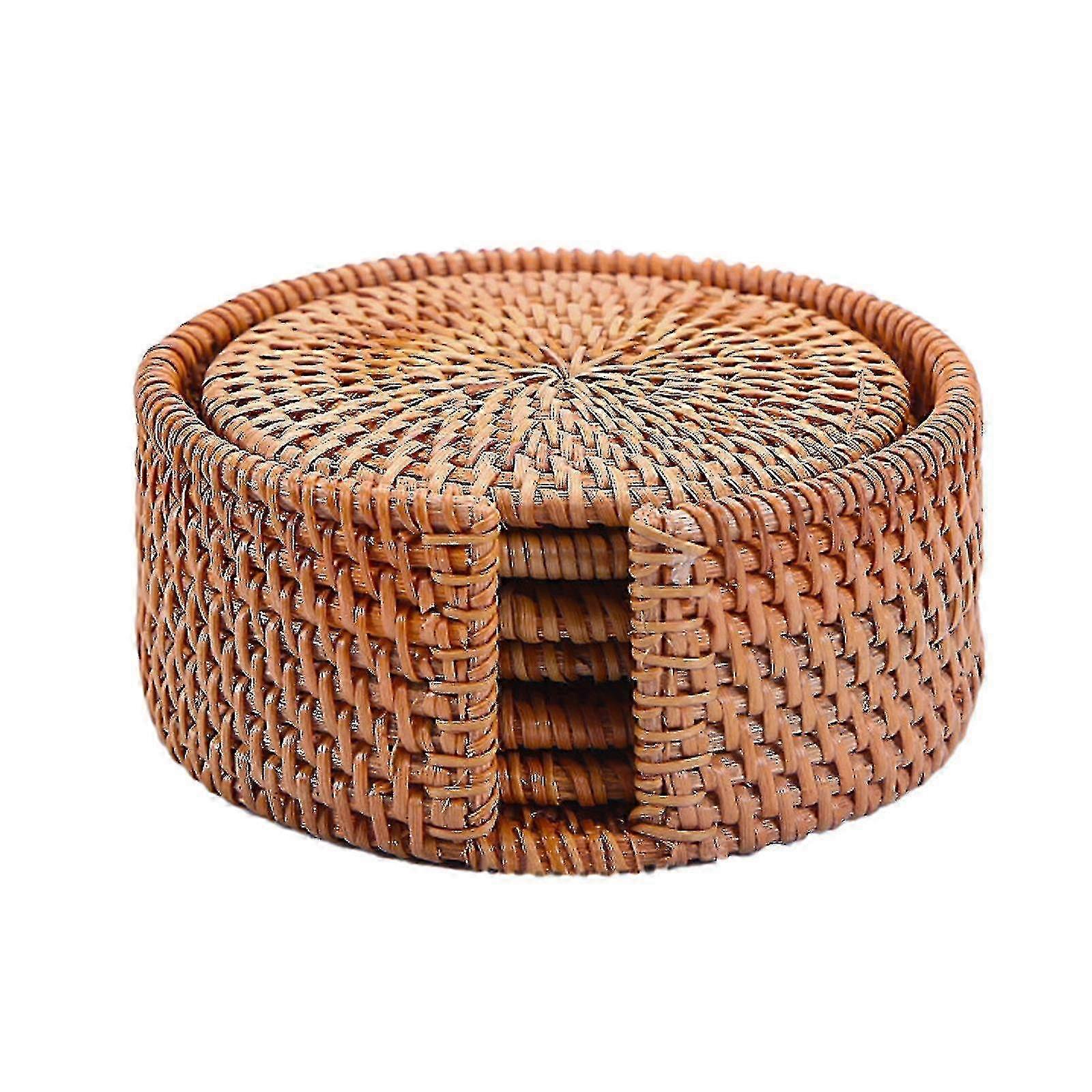 Boho Coasters Set - Wicker Teapot Pad, Rattan Cup Holder, Heat Resistant Tableware Decor, Reusable Kitchen Placemat
