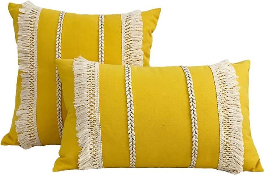 Boho Throw Pillow Cover Cotton Linen Tassel Decorative Cushion Cover Farmhouse Solid Color Square Accent Pillowcase For Sofa Couch Bedroom, 1 Piece (c