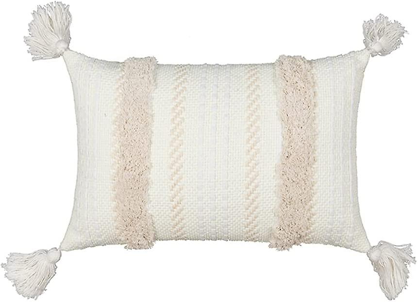 Boho Tufted Throw Pillow Cover With Tassels Accent Decorative Rectangle Lumbar Cushion Case Pillowcase For Bed Sofa Car (cream,12"x20")