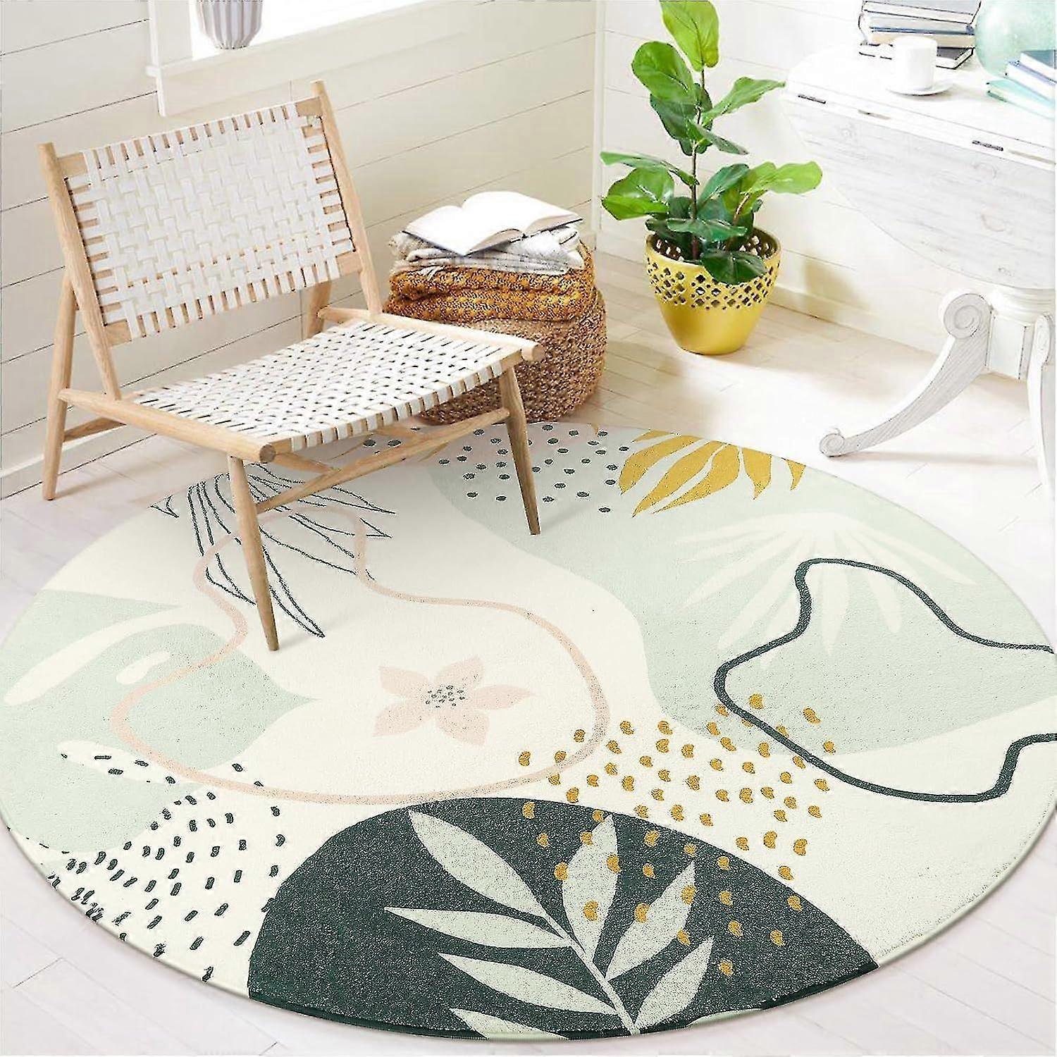 Boho Round Area Rug - 3Ft Washable Round Bathroom Rug Non-Slip Small Circle Rug for Bedroom Throw Soft Cute Kids Nursery Rug, Green Botanical Print Ro