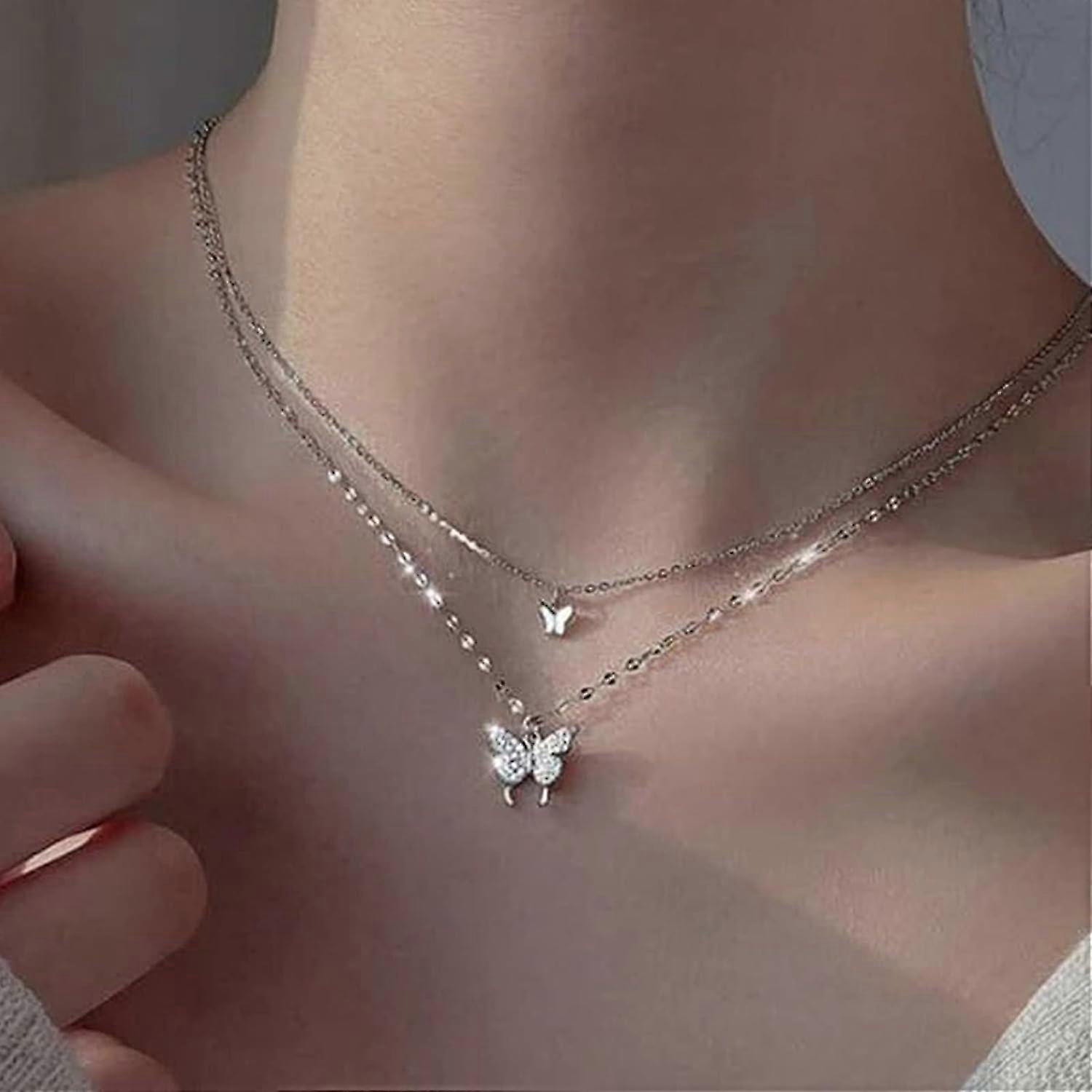 Boho Layered Crystal Butterfly Necklace Choker Vintage Silver Je