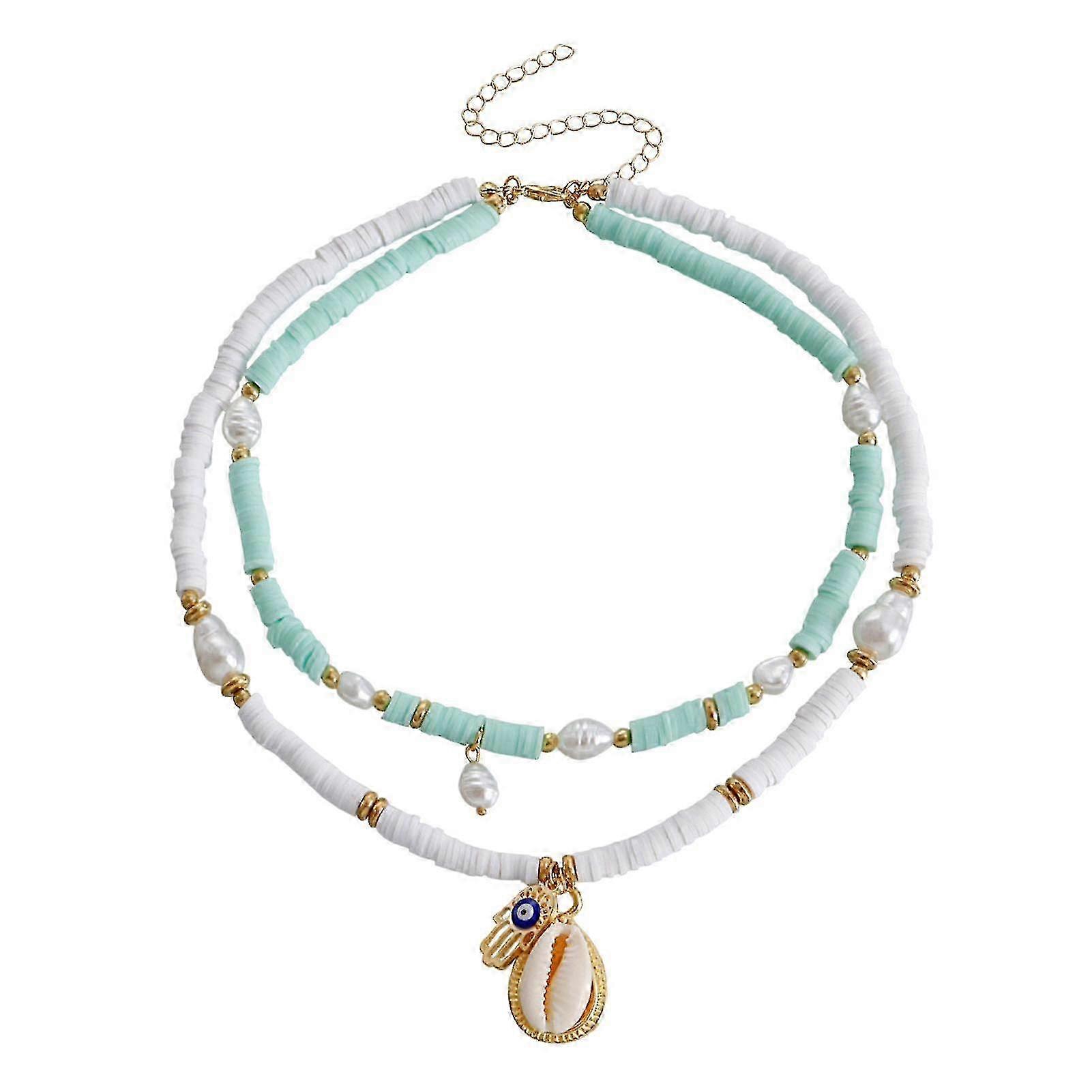 Boho Layered Turquoise Necklaces Women Soft Pottery Devil's Eye Necklaces Wear Colorful Necklace Statement Jewelry for Party Beach Summer