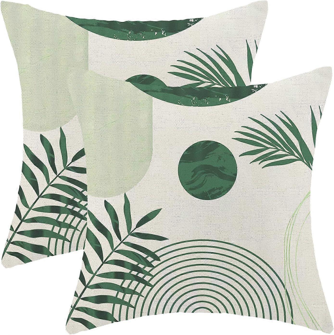 Boho Summer Outdoor Pillow Covers 16 x 16 Inch, Sage Green Leaf Decor Throw Pillows for Couch Bed, Modern Abstract Plant Indoor Farmhouse Decorative P