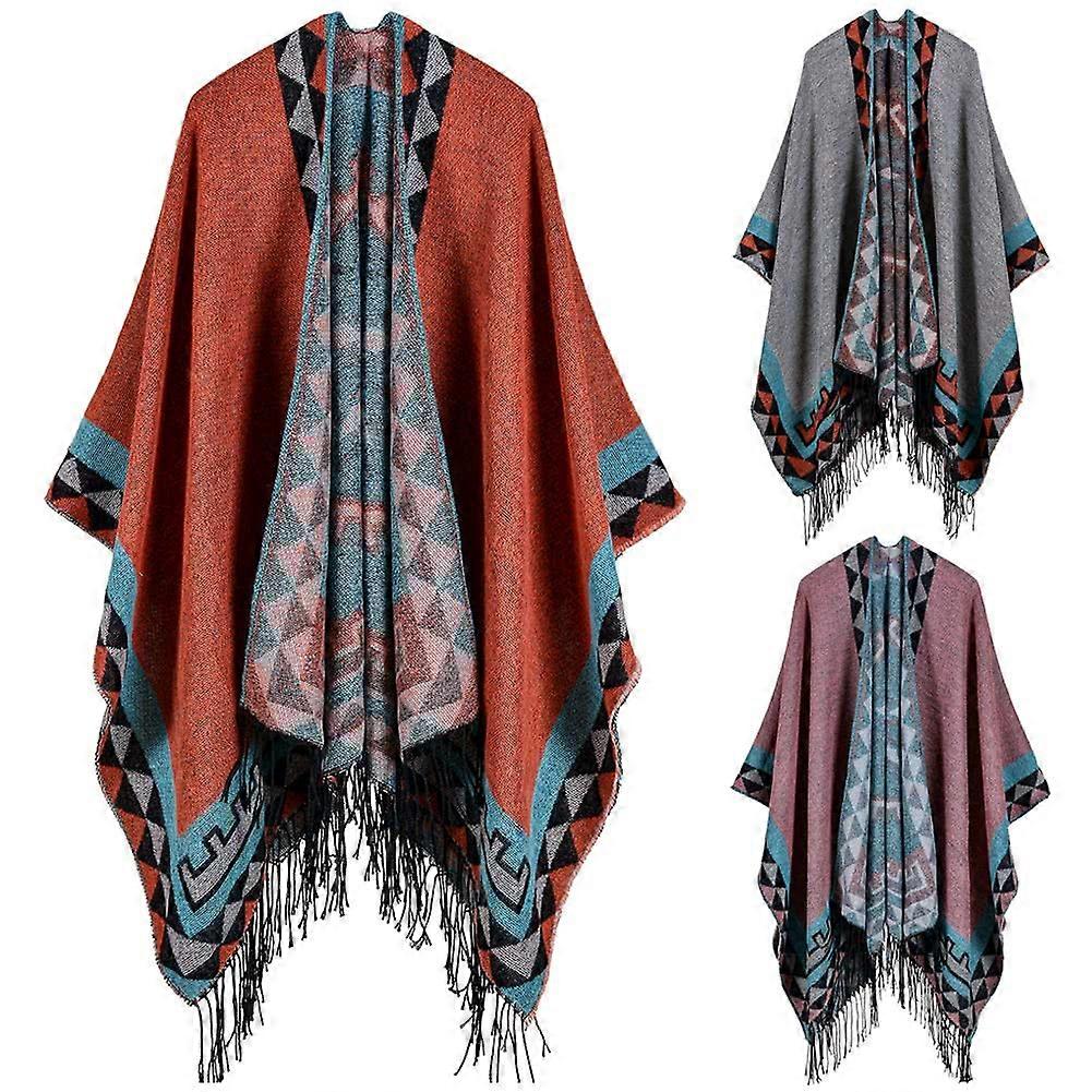 Boho Women's Geometric Knit Poncho Shawl, Faux Cashmere Tassel Cape, Oversized & Warm