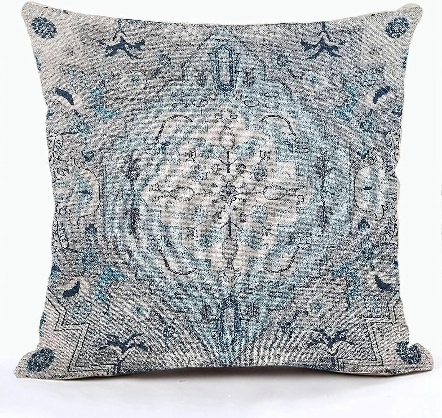 Boho Pillow Cover Ethnic Design Pattern Linen Persian Carpet Tribal Pattern Throw Pillow Case Cushion Cover Home Office Decorative Square 18x18 inch B