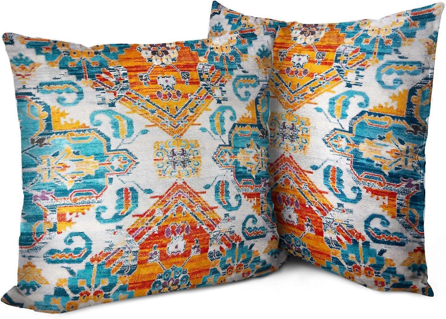 Boho Pillow Covers 16"x16" Set of 2 Persian Carpet Orange Blue Vintage Throw Pillow Case Soft Square Decorative Pillowcases for Home Decor Sofa Car Li