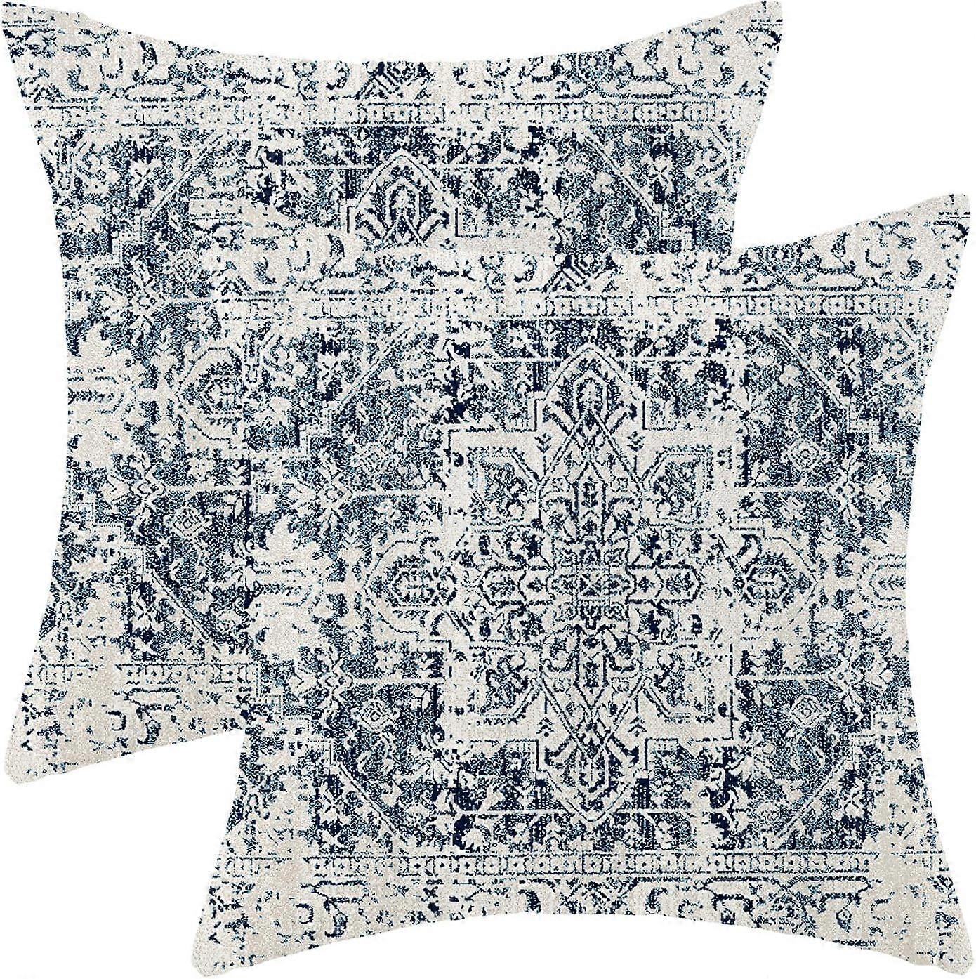 Boho Pillow Covers 16x16 Inch Set of 2,Carpet Pattern Throw Pillows Case,Blue White Ethnic Design Outdoor Decorative Square Linen Farmhouse Decor Cush