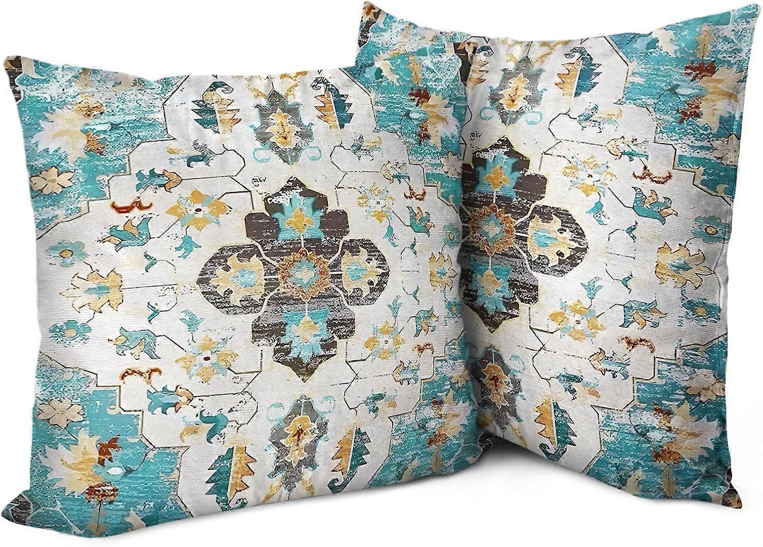 Boho Pillow Covers 18"x18" Set of 2 Persian Carpet Cyan Vintage Throw Pillow Case Soft Square Decorative Pillowcases for Home Decor Sofa Car Living Ro