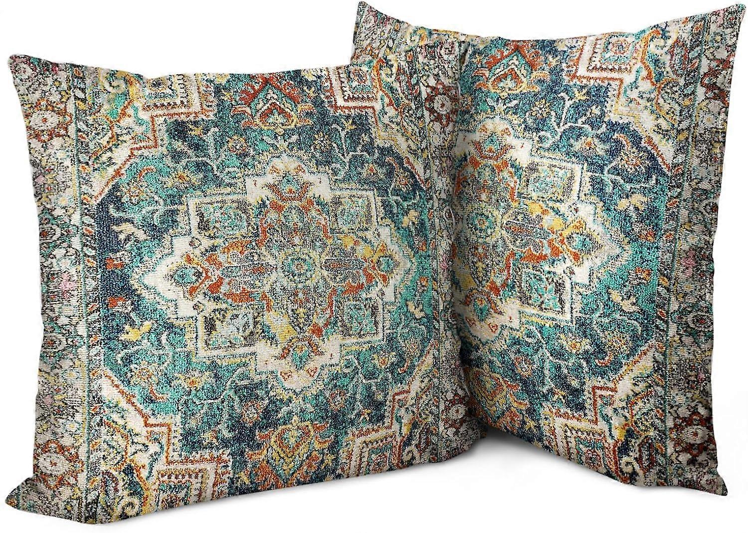 Boho Pillow Covers 18"x18" Set of 2 Vintage Persian Carpet Green Bohemian Throw Pillow Case Soft Square Decorative Pillowcases for Home Decor Sofa Car