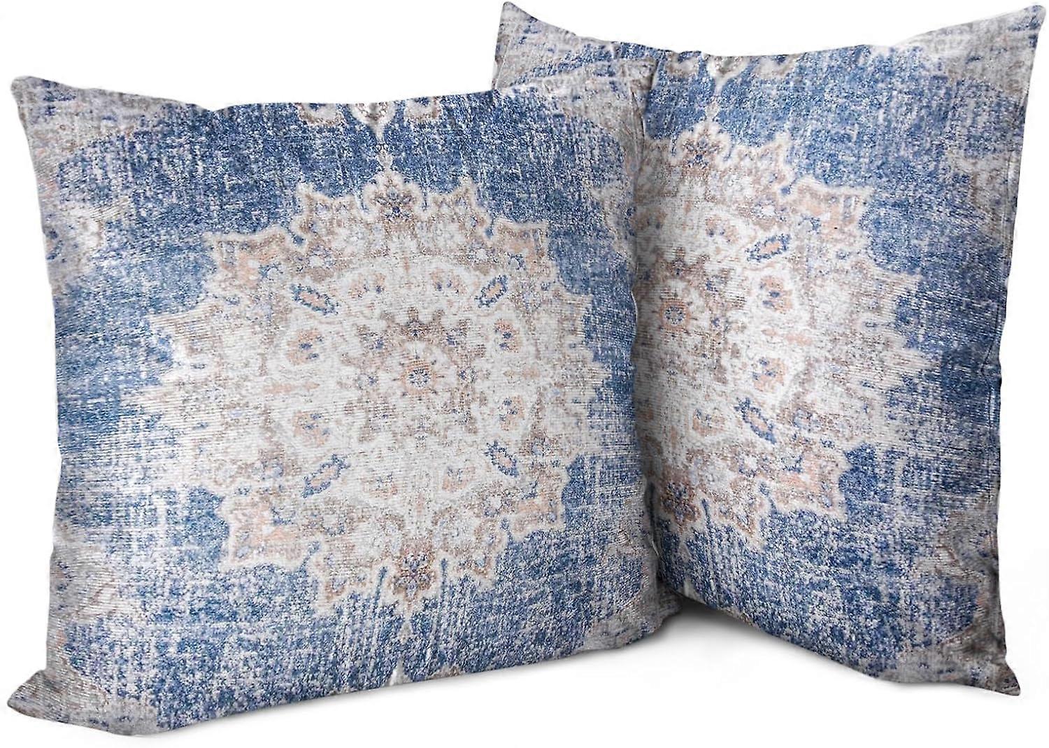 Boho Pillow Covers 18"x18" Set of 2 Vintage Persian Carpet Blue Bohemian Throw Pillow Case Soft Square Decorative Pillowcases for Home Decor Sofa Car