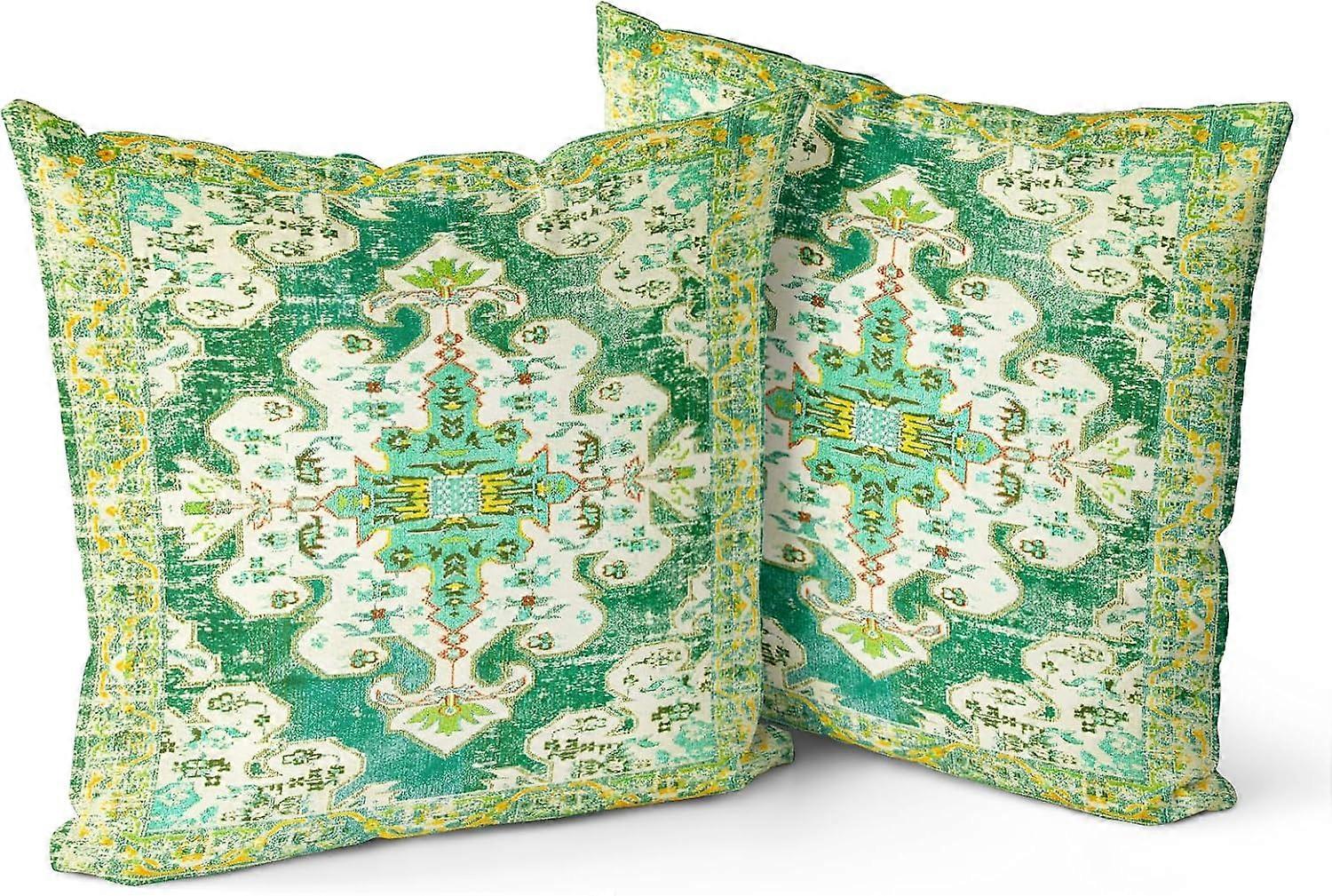 Boho Pillow Covers 18x18,Green Ethnic Design Outdoor Decorative Throw Pillows for Couch,Carpet Pattern Decor Cushion Farmhouse Linen Pillowcase for Be