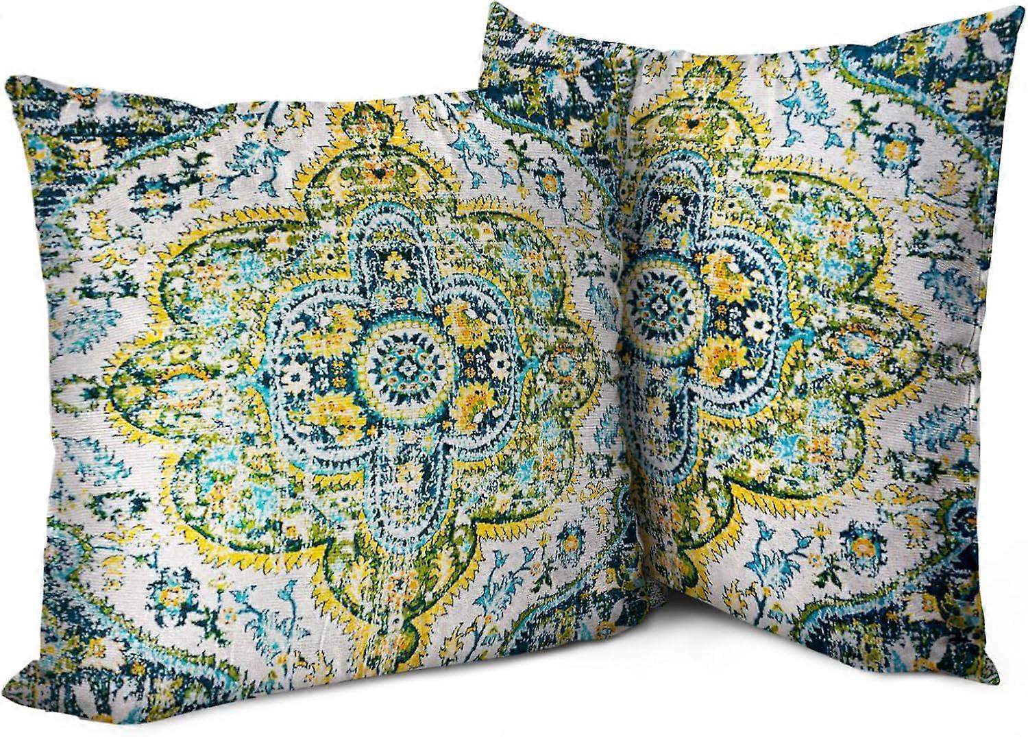 Boho Pillow Covers 20"x20" Set of 2 Persian Carpet Green Vintage Throw Pillow Case Soft Square Decorative Pillowcases for Home Decor Sofa Car Living R